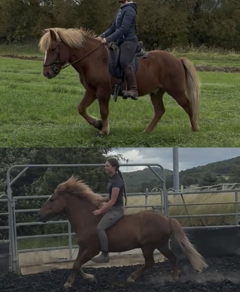 Isak est un hongre islandais de 6 ans, de robe alezane foncée. Il possède une constitution solide et musclée. Non seulement son apparence est magnifique, mais son caractère est également irréprochable. Il sera un compagnon fidèle, amical et surtout très loyal ! Je pourrais également l’imaginer comme cheval de famille. Il est sociable, bien éduqué et calme au quotidien. Cependant, il a suffisamment de tempérament dès qu’il s’agit de travailler. Il travaille avec dynamisme et aime apprendre et découvrir de nouvelles choses. Je l’ai déjà formé avec douceur. Avant cela, il a été élevé de manière adaptée dans un troupeau. Il peut être monté librement en rond de longe et répond très finement à la voix dans toutes les situations. Il connaît également la monte avec selle et bridon. Il possède de bonnes bases en travail à pied et en liberté. En extérieur, il peut se promener en groupe ou seul, même pendant plusieurs heures. Les balades sans selle sont aussi très agréables avec lui ! Sur le manège, il peut évoluer dans toutes les allures. Il est 4-gangers et montre toutes les allures. Le dérobement, le coup de pied ou la morsure sont pour lui des mots étrangers ! Il est en parfaite santé, sans allergies, eczéma ou autres soucis. Il connaît le box comme l’herbage en paddock. Pour toute question ou intérêt, n’hésitez pas à me contacter. Des vidéos sont disponibles. Une mise en selle d’essai est possible.