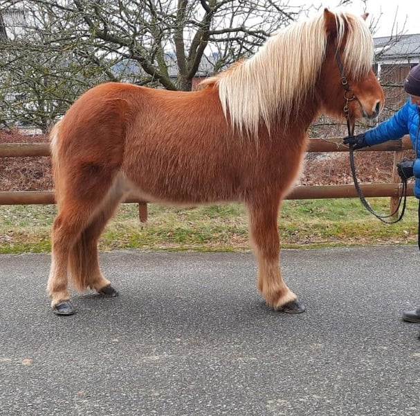 Kóngur ist ein großer (ca. 1,50 Stkm.), imposanter Fuchswallach mit sehr kräftigem Fundament. Er ist in Island geboren und seit März 2022 in Österreich, lebt hier bei uns im Offenstall ohne Eingedeckt zu sein und zeigt bislang keinerlei Anzeichen von Sommerekzem. Er ist in der Herde eher rangniedrig und super sozial. Kongur ist aktuell im Training, er kennt Reitplatz, Halle, Ovalbahn und Gelände. Er ist viergängig veranlagt und hat einen sehr guten, raumgreifenden Schritt, einen guten Trab und schönen, weichen Galopp. Sein Tölt ist einfach abzurufen, mit schönen Bewegungen und gutem Fluss, kann zu Beginn aber etwas passig sein. Beim Reiten ist er immer bemüht zu gefallen und hört sehr gut auf den Reiter hin und reagiert fein auf die Reiterhilfen. Er geht fleißig vorwärts, aber nie übereilt, wir würden sein Temperament als mittel einstufen. Aufgrund seiner Größe deckt Kongur auch großgewachsene, langbeinige Reiter/innen sehr gut ab. Er wurde bei uns auch schon von jugendlichen Reiterinnen geritten und wir können ihn uns daher auch sehr gut für eine fortgeschrittene Jugendliche vorstellen. Auch für Umsteiger vom Großpferd können wir ihn uns aufgrund seiner Größe und seiner leicht abzurufenden Gänge (vor allem sein leichter Tölt) vorstellen, da er bei uns auch schon von einer Warmblutreiterin geritten wurde und diese seinen Tölt mit etwas Anleitung problemlos reiten konnte. Für Anfänger oder ängstliche Reiter ist Kongur nicht geeignet, da er ein feines Pferd ist und gut auf den Reiter reagiert.