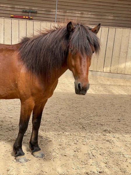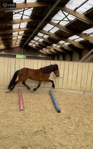 IJslander ruin, hengst uit 2018 met een stokmaat van 136 cm, mensgericht, speels en knuffelig. Sociaal in de kudde, alert en zeer werkwillig. Over hem: Hij is gewoon een geweldige vent – ondeugend, ongelooflijk lief en vol karakter. ’s Ochtends in de stal tovert hij meteen een glimlach op je gezicht wanneer hij nieuwsgierig naar je toe komt. Hij is vriendelijk, open, soms charmant ondeugend en speelt graag liefdevol met zijn maatjes – maar stopt onmiddellijk als je „stop“ zegt. Een karaktersterk, gevoelig en simpelweg een schattig paard zoals je niet vaak tegenkomt. Wat betreft zijn kwaliteit: Hij beschikt over veel en goede tölt, is 4,5-gangend en de pas is nog niet verder ontwikkeld. Alle gangen kunnen goed en duidelijk worden gewerkt. Onder het zadel toont hij veel go en energie, vooral in het terrein is hij voorwaarts en loopt hij graag sneller, maar hij is daarbij zeer fijn te reguleren. Geschikt voor ruiters die terrein en kleinere wedstrijden willen combineren. Hij is geen beginnerspaard, omdat hij gevoelig reageert op hulpteugels en een rustige, voorzichtige hand met fijne, duidelijke hulpen nodig heeft. Bij de juiste ruiter is hij extreem gemotiveerd, wil hij graag gefallen en biedt hij veel potentieel voor verdere opleiding. Opgeleid in de bak, op de piste en in het terrein, bekend met longe en dubbele longe, circustrucs en kleinere wedstrijden. Hij is smid- en trailerproof, over het algemeen onbevreesd, maar zeer fijn en alert in de omgang. Hij staat eigenlijk in 41379 Brüggen, maar momenteel voor training in Swalmen (NL) en kan daar bezichtigd worden. Ik verkoop hem met pijn in mijn hart vanwege tijdgebrek. Ik hoop dat hij een thuis krijgt waar hij voldoende aandacht krijgt en verder gestimuleerd en uitgedaagd wordt – want dat is precies wat hij liefheeft en nodig heeft. Het zou mooi zijn als hij weer in een kleine kudde kan leven.