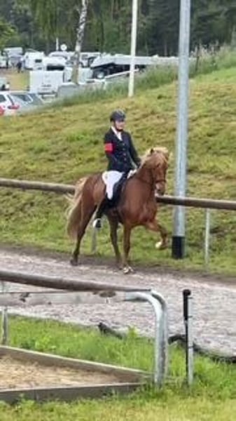 Sproti ist ein neunjähriger Islandwallach, der 2021 aus Island nach Deutschland kam. Er ist Viergänger, mit sehr klarer Gangtrennung. Er hat einen ruhigen taktklaren schreitenden Schritt, sein Trab gehört mit zu seiner Lieblingsgangart und hat eine gute Schwebephase, der Galopp ist gut bergauf gesprungen und lässt sich wunderbar sitzen. Der Tölt ist immer taktklar und bis ins mittlere/hohe Tempo gut abrufbar. Er hat eine überdurchschnittlich gute Gangqualität. Außerdem ist er dressurmäßig gut ausgebildet und macht auch im Viereck eine gute Figur. Er kennt die Halle, Ovalbahn und das Gelände. Mit ihm kann man wunderbar alleine aber auch in der Gruppe ausreiten, er lässt sich jederzeit durchparieren und ist wirklich eine Lebensversicherung im Gelände. Im Umgang ist er absolut brav, er lässt sich ganz artig verladen und ist super artig beim Schmied. In der Gruppe ist er eher rangniedrig, weshalb für ihn eine Haltung mit einer ad libitum Fütterung am besten ist, so hat er die Möglichkeit über den Tag verteilt genügen Fresszeiten zu bekommen. Er steht im Offenstall in einer Wallachherde. Er hat Turniererfahrung und in den leichten Prüfungen V5 und T7 auch einige Platzierungen, letzes Jahr sind wir in der V2 und T3 gestartet, auch in der V2 konnten wir schon erste Erfolge verbuchen. Allerdings ist das Turnierreiten nicht seine Lieblingsdisziplin, weshalb ich mir für ihn gerne jemanden wünsche, bei dem das Turnierreiten nicht im Vordergrund steht. Er hat ein eher ruhiges bis mittleres Temperament. Er ist wirklich ein Traumpferd, für jemanden der sich ein Pferd mit sehr guter Gangqualität und Spaß im Alltag wünscht. Für den großen Sport fehlt ihm etwas das Selbstbewußtsein.