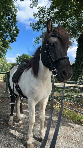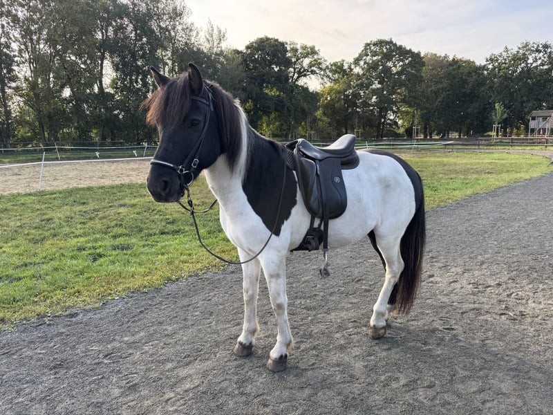 Wunderschöner Islandpferd-Wallach zu verkaufen Wir bieten einen charmanten Islandpferd-Wallach zum Verkauf an, geb. 2016, Rappschecke, Viergänger, Stockmaß ca. 145cm Dieser liebevolle und gut gerittene Wallach überzeugt durch seine auffällige Scheckung und sein freundliches Wesen. Sein Schritt ist schreitend, sein Trab schwungvoll und sein Galopp schön gesprungen. Für den Tölt braucht es aktuell noch etwas reiterliches Geschick. Er geht in der Gruppe und alleine ins Gelände, auch Dressurarbeit in der Halle kennt er. Durch seinen Körperbau wirkt er eher größer als seine ca. 145cm Stm. und deckt dadurch auch größere Reiter gut ab. Er steht aktuell in einer großen Wallachherde und ist eher rangniedrig. Er ist seit zwei Jahren in Deutschland, hat bisher keine Anzeichen von Ekzem gezeigt. Er wird aber vorsorglich im Sommer bei uns eingedeckt. Bei Interesse oder weiteren Fragen freuen wir uns über Nachricht! Standort: Schwanewede