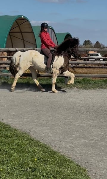 ✨ Islandpferd Skjóni – treuer Schecke mit Herz sucht neues Zuhause ✨ Unser hübscher, groß gewachsener Schecke Skjóni ist auf der Suche nach einem neuen Menschen, der mit ihm viele schöne Erlebnisse teilt. Mit seinem freundlichen Wesen und seiner besonderen Ausstrahlung hat er uns von Anfang an begeistert. Skjóni ist stehts mutig und nervenstark und ihn bringt so schnell nichts aus der Ruhe. 🐴 Ein echter Verlasspartner Skjóni ist ein Pferd, auf das man sich verlassen kann. Ob allein im Gelände, in der Gruppe, auf dem Platz oder im Straßenverkehr, Strandritt, Halsringreiten, Stoppelfeldgalopp– er bleibt stets ruhig und gelassen. Besonders sein immer taktklarer Tölt macht ihn zu einem wahren Vergnügen im Sattel. Er ist leicht zu reiten und vermittelt jedem Reiter ein sicheres Gefühl. 👧 Lehrmeister & Freund Skjóni war das erste eigene Pferd seiner jetzigen jungen Besitzerin. Gemeinsam haben sie viel gelernt, und er hat ihr stets Sicherheit, Freude und Vertrauen gegeben. Nun ist die Zeit gekommen, dass er eine neue Familie oder einen neuen Menschen glücklich macht. 🌟 Für wen ist Skjóni der Richtige? Er eignet sich ideal für Reiter, die sich einen unkomplizierten, freundlichen und treuen Begleiter wünschen – sei es als Familienpferd, für Jugendliche mit Erfahrung oder für alle, die ein zuverlässiges Freizeitpferd suchen, das mit seinem Wesen und seiner Schönheit überzeugt. ➡️ Skjóni wartet darauf, neue Wege zu gehen und seinem nächsten Menschen genauso viel Freude zu schenken, wie er es bereits getan hat.