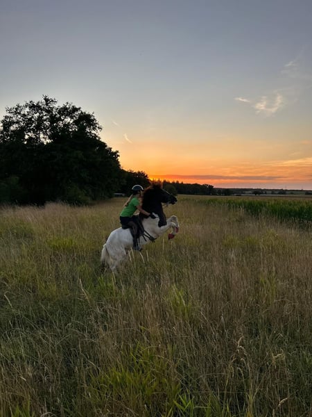 ✨ IJslands paard Skjóni – trouwe schimmel met hart zoekt een nieuw thuis ✨ Onze knappe, groot gebouwde schimmel Skjóni is op zoek naar een nieuwe eigenaar die samen met hem vele mooie ervaringen wil delen. Met zijn vriendelijke aard en zijn bijzondere uitstraling heeft hij ons vanaf het begin weten te betoveren. Skjóni is altijd moedig en zenuwsterk, en niets brengt hem snel uit zijn evenwicht. 🐴 Een betrouwbare partner Skjóni is een paard waarop je kunt rekenen. Of het nu alleen in het terrein is, in een groep, op de rijbaan of in het verkeer, strandritten, halstertouwrijden, galopperen over braakliggende velden – hij blijft altijd kalm en ontspannen. Zijn constante, tactiele tölt maakt hem vooral plezierig in het zadel. Hij is gemakkelijk te rijden en geeft elke ruiter een veilig gevoel. 👧 Leermeester & vriend Skjóni was het eerste eigen paard van zijn jonge eigenaresse. Samen hebben ze veel geleerd, en hij heeft haar altijd veiligheid, plezier en vertrouwen gegeven. Nu is de tijd aangebroken dat hij een nieuw gezin of een nieuwe eigenaar gelukkig maakt. 🌟 Voor wie is Skjóni de juiste keuze? Hij is ideaal voor ruiters die op zoek zijn naar een eenvoudige, vriendelijke en trouwe metgezel – of het nu als gezelschapspaard voor het gezin is, voor jongeren met ervaring, of voor iedereen die een betrouwbaar recreatiepaard zoekt dat met zijn aard en schoonheid overtuigt. ➡️ Skjóni wacht erop om nieuwe paden te bewandelen en zijn volgende eigenaar net zoveel vreugde te brengen als hij al heeft gedaan.
