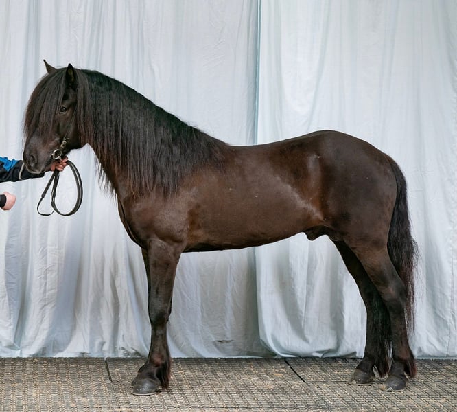 Kanslari frá Hófi Gelding, 1.50 m *Born in 2016 in Iceland Four-gaited Black with a star Immunized, vaccinated, and dewormed FIZO approved (8.29 without passport) BLUP 111 (114 without passport) Sire: Ölnir frá Akranesi 8.82 (Ext. 8.43, Re. 9.09‼️) Dam: Glotti frá Sveinatungu 8.64 (Ext. 8.24, Re. 8.90‼️) Granddam: Kantata frá Hofi 8.26 (Ext. 8.44, Re. 8.14) Great-granddam: Kormákur frá Flugumýri 8.30 (Ext. 8.23, Re. 8.37) Kanslari combines everything! Excellent gait quality, outstanding appearance (9.5 for mane and tail), and a dream character. His mother, Kantata, is also the dam of the magnificent Konsert frá Hofi, Kvarði frá Hofi, and Kunningi frá Hofi, with none of her offspring leaving anything to be desired. His sire is none other than Ölnir frá Akranesi, known for consistently producing top-quality progeny that impress with both appearance and gait. We had the opportunity to train offspring of Ölnir in Iceland. It was incredible—super friendly, uncomplicated, with fantastic gaits, and all with a special look. It was clear then: we wanted a child of Ölnir, and here he was… our handsome Kanslari. He was presented at FIZO and scored 8.44 for conformation and 8.21 for riding qualities as a four-gaited horse. His gaits are evenly well-developed, and his tölt, rated 8.5, is always rhythmical with a high, clear movement. Kanslari is an impressive 1.50 m tall stallion with an excellent character that you can always rely on – guaranteed fun factor included. He impresses with his joy of tölting in the terrain and remains motivated and eager to work in the arena, hall, and on the oval track. A reliable dream horse that convinces with willingness to perform and positive charisma, whether as a luxury leisure horse or breeding stallion. Due to a mild eczema, he is offered at a very fair price. Anyone interested in getting to know and try this beauty is welcome to arrange a visit with us in A-5221 Lochen am See.