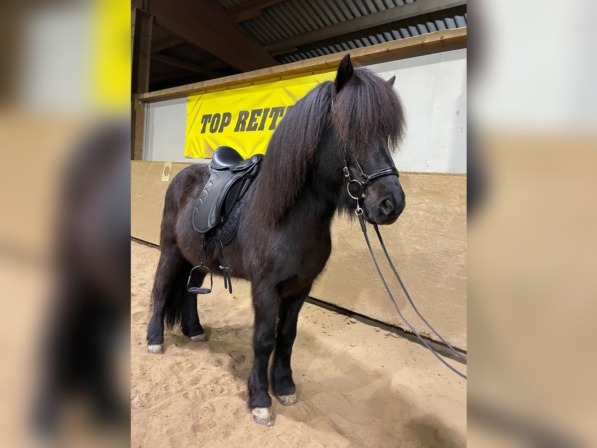 Krummi frá Tjarnastöðum (*2012) ist ein beeindruckender, eleganter Hengst mit einem Stockmaß von 1,45 m und einer Gesamt-FIZO-Bewertung von 8,44. Seine Reiteigenschaften wurden mit 8,45 bewertet, wobei er in den Gangarten Tölt, Pass und Galopp sowie in der Form unter dem Reiter jeweils eine 8,5 erhielt. Besonders hervorzuheben sind seine 9,0 für Charakter und Gehwille. Auch im Exterieur überzeugt er mit einer Gesamtnote von 8,43, darunter 8,5 für Kopf, Hals-Widerrist-Schulterpartie und Hufe sowie eine 9,0 für seine Proportionen. Krummi besticht durch ausdrucksstarke und elegante Bewegungen, allen voran sein Tölt, der sich stets locker, geschmeidig und taktsicher zeigt. Im täglichen Umgang präsentiert er sich freundlich und respektvoll. Er ist sowohl schmiede- als auch verladefromm und befindet sich in einem sehr guten gesundheitlichen Zustand. Aufgrund seiner hervorragenden Abstammung ist Krummi auch für die Zucht äußerst interessant. Sein Vater, Sjoður frá Kirkjubær, wurde mit dem Ehrenpreis sowie dem 1. Preis für Nachkommen ausgezeichnet und erreichte eine FIZO-Gesamtnote von 8,7, mit einer 9,0 für die Reiteigenschaften. Auch die Mutter sowie die Großeltern sind jeweils mit der FIZO-Elite bewertet. Aufgrund seines Temperaments eignet sich Krummi nicht für Anfänger. Wegen persönlicher Veränderungen muss ich mich schweren Herzens von ihm trennen – daher wird er in gute Hände deutlich unter Wert abgegeben.