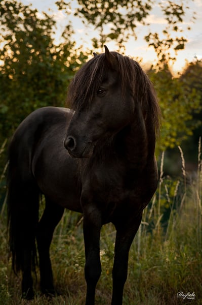 Hermann frá Byskogi Stallion, Black, born in 2011, 140cm Hermann is a very refined and sensitive four-gaited stallion. He is not at all stallion-like in handling and is very well-behaved; he is kept with another stallion here. Hermann is looking for his person, someone who has a lot of feeling and can provide him with security. In return, he offers a fantastic riding experience and is a lot of fun. He has a lot of tempo variation in his tölt, is always rhythmically clear with very good movements, and his basic gaits are also of very high quality. Currently, he is not in training. His father is the well-known honorary prize winner Herjolfur frá Ragnheiðarstöðum, and his mother is the elite-graded mare Prydi frá Feti. His previous offspring have shown to be very promising. Two of his sons are already licensed, and the first will be started under saddle this autumn. Hermann is otherwise completely checked, healthy, and free from eczema. Hermann is looking for a forever home with someone who understands him and can address his issues well. He will not be sold as a beginner's horse or into inexperienced hands! Quality over price. Location: 88273
