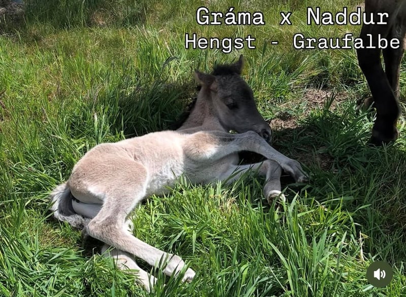 Beschreibung: Richterspruch: Selbstbewusstes, mutiges, freundliches Hengstfohlen mit viel fließendem taktklaren Tölt, bergauf gesprungenem Galopp und harmonischer Dreiteilung des Gebäudes. Exterieur: sehr groß und langlinig Ausbildungsstand: Fohlen ABC Vater: Außergewöhnlicher Fünfgänger. 3-facher WM-Teilnehmer. Naddur vom Schluensee ist ein großer Fizo-Elite geprüfter Rapphengst, der seine hervorragende Qualität auch schon bei etlichen nationalen wie internationalen Meisterschaften bewiesen hat. 2015 und 2017 startete er auf der Weltmeisterschaft. Aber nicht nur er selbst ist hocherfolgreich im Sport unterwegs gewesen, auch seine Nachzucht kann sich schon mit Meisterehren schmücken (unter anderem die deutsche Meisterin im Töltpreis Náttrun vom Forstwald). Zudem verfügt Naddur über einen außerordentlich freundlichen Charakter, den er seinen Nachkommen mitgibt. Mutter: Gráma ist eine tolle LK1 Fünfgangstute die sehr weite und große Bewegungen hat. Pflegezustand: Gaupnir ist wie alle von Kranichtal gezüchteten Pferde ekzemfrei und aus ekzemfreien Elternlinien. Sonstiges: Gaupnir kann ab 1.10.2025 abgesetzt werden.