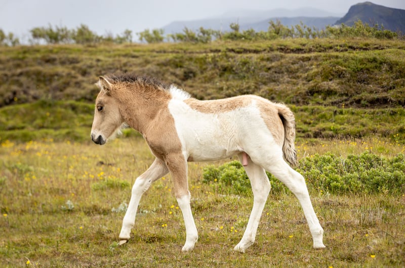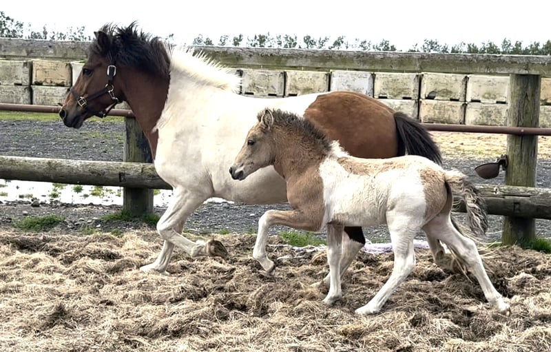e are present this eye-catching buckskin tobiano colt, born in 2025 in Iceland. He combines striking color genetics with strong, correct conformation and an engaging, human-oriented character. ✔️ Friendly and curious from birth ✔️ Strong build, showing tölt and pace ✔️ Sire is first price stallion with 8.32 total and dam with 7.79 total. Both parents are proven riding horses with reliable gaits and excellent character. ✔️ Available after weaning in November – further raising at the farm can be arranged Eligible for export – transport within Europe possible. Get in touch for more information, videos, and reservation options.