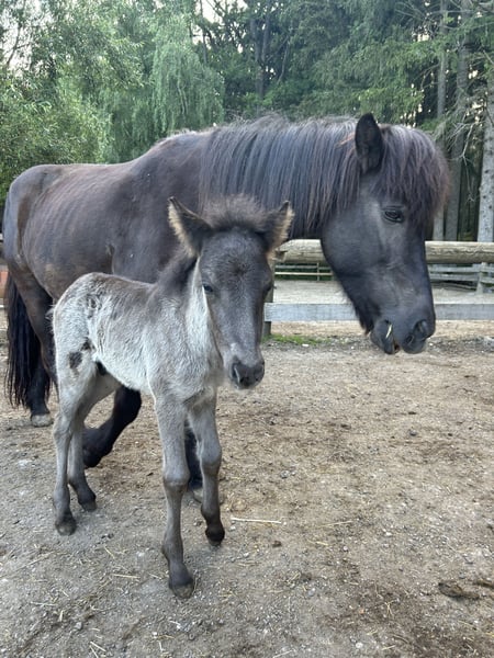 Te koop: mijn IJslander jaarling. Het kleine is bij ons op de stal geboren (veulensfoto’s 7,8) en wordt dit jaar in juni twee jaar oud. Sinds het afzetten staat hij in een gemengd openstalperceel en kan hij goed overweg met de andere paarden. Hij kent de basis van de veulens, zoals aan de halster lopen, poetsen, hoefverzorging, etc. Zijn karakter is zeer lief, nieuwsgierig, leergierig en totaal onbevreesd. Hij toont veel Tölt, maar heeft ook een mooie draf en galop. Beide ouders staan bij ons op de stal en kunnen bezichtigd worden. Hij heeft momenteel nog geen papieren, maar er is de mogelijkheid om een vrijetijds- of fokpas aan te vragen. (Hierop is de vraagprijs op basis van onderhandeling). Bij vragen hoor ik het graag. Het is GEEN noodgeval of vergelijkbaar, daarom graag geen onbeleefde prijsaanvragen!