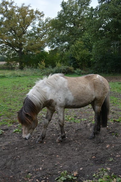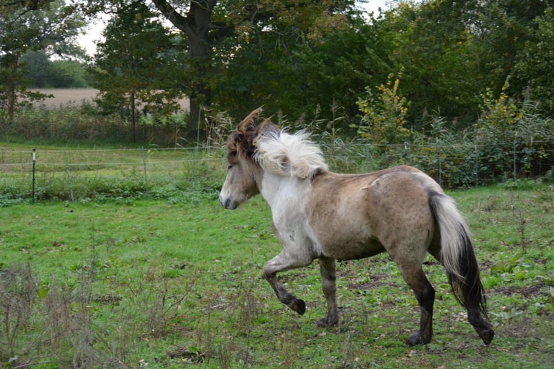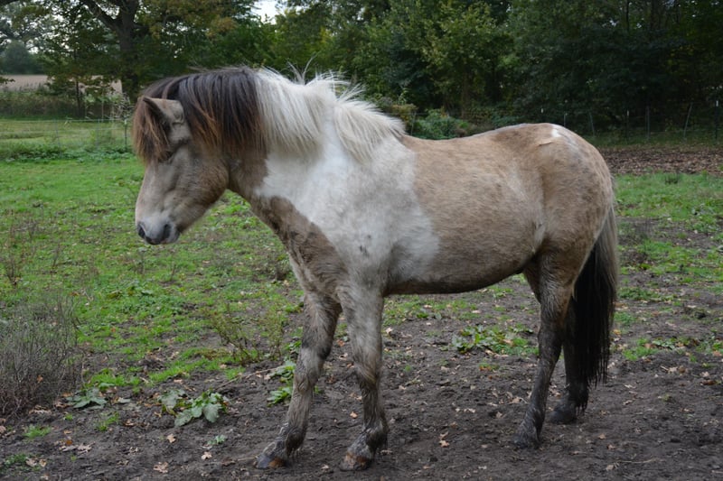 Hjalti po Seimur, przyciąga wzrok, jego umaszczenie to Braunisabell - Sabino. To zrównoważony, dobroduszny młody ogier, który chętnie się uczy. Dobrze dogaduje się ze wszystkimi i, podobnie jak jego koledzy, stoi obok młodych klaczy na dużym pastwisku dla ogierów w wieku od 1 do 4 lat. Hjalti jest synem ogiera Hekja po Seimur (Tobiano) i dobrze znanego ogiera Krjarkur po Seimur, gniadego. Może być prezentowany jako 3-latek i byłby świetnym ogierem hodowlanym, ale nadaje się również do sportu i rekreacji. Bardzo dobrze chodzi na halterze obok ciebie. Jest 5 i osiągnie ostateczną wysokość około 1,44 metra. Jeśli wzbudziliśmy Twoje zainteresowanie, odwiedź nas lub wyślij nam wiadomość.