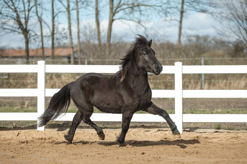Beschreibung: Fáfnir ist ein im sportlichen Typ stehender 2-jähriger Hengst. Er hat sehr viel Potenzial, welches ihm seine guten Eltern vererbten. Im Umgang ist er dem Menschen gegenüber sehr aufgeschlossen, freundlich und immer unkompliziert. Seine ersten Bodenarbeits-Übungen hat er sehr kooperativ gemeistert. Dabei sind seine feinen Reaktionen und seine jetzt schon außergewöhnliche Tempofähigkeit im Freilauf aufgefallen. Aufgrund seiner sehr guten Eltern können wir ihn uns als späteres Sportpferd vorstellen. Ausbildungsstand: Fáfnir ist noch roh, kennt aber schon das Halfter und die Hufpflege. Vater: Außergewöhnlicher Fünfgänger. 3-facher WM-Teilnehmer. Naddur vom Schluensee ist ein großer Fizo-Elite geprüfter Rapphengst, der seine hervorragende Qualität auch schon bei etlichen nationalen wie internationalen Meisterschaften bewiesen hat. 2015 und 2017 startete er auf der Weltmeisterschaft. Aber nicht nur er selbst ist hocherfolgreich im Sport unterwegs gewesen, auch seine Nachzucht kann sich schon mit Meisterehren schmücken (unter anderem die deutsche Meisterin im Töltpreis Náttrun vom Forstwald). Zudem verfügt Naddur über einen außerordentlich freundlichen Charakter, den er seinen Nachkommen mitgibt. Pflegezustand: Kerngesund, deutsch gezogen, ekzemfrei, aus ekzemfreien Elternlinien. Preiskategorie: B - bis 20.000€ https://www.kranichtal.de/pferde/jungtiere/fafnir/