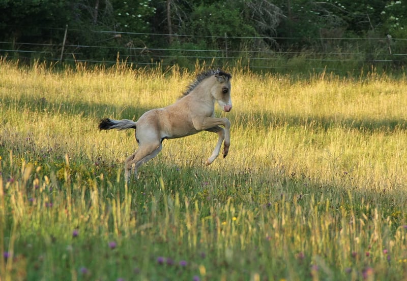 Vous recherchez un étalon avec un effet "wow" ? Un cheval sensible, doté d’un peu plus de tempérament ? Velvakandi est né en 2018 chez moi, exempt d’eczéma depuis, régulièrement vermifugé, vacciné et entretenu ses sabots. En raison d’une blessure lors de la monte d’une jument, son utilisation comme cheval de selle peut être limitée ; il est donc proposé à un prix avantageux, pour une prise en charge durable par des propriétaires sérieux. La vente se fait exclusivement en tant qu’étalon de reproduction. Il est manipulé de manière expérimentée comme jeune cheval et est également apte à la ferrure et au chargement. Par manque de temps, il n’a pas encore été monté, mais il est désormais à l’âge idéal pour cela. Il ne s’agit pas d’un cheval pour un monte rapide, mais plutôt d’un partenaire à monter et à former avec patience et calme, afin d’obtenir un compagnon fiable et agréable. En raison de sa blessure, une utilisation comme cheval de loisir semble la seule possibilité. Son caractère sensible, sincère, amical et exempt de mauvaises habitudes, associé à un tempérament élevé mais facile à gérer, le rend vif et volontaire au travail. En liberté, il réagit immédiatement à de faibles aides de conduite sans devenir fou. Velvakandi possède une tête fine, plutôt noble, avec un cou bien attaché, s’amincant vers la tête, et une ligne du dos légèrement courbée. Avec environ 137 cm au garrot et sa silhouette plutôt sportive, il conviendra parfaitement à un adulte moyen, étant robuste, avec un dos pas trop long et une bonne qualité de membres. En tant que poulain, il a été évalué avec un score de 7,9 en Extérieur, 8,2 en Intérieur et 8,0 en Allures. C’est un poulain bien construit, avec une répartition équilibrée entre Tölt et trot, de mouvements moyens à élevés, beaucoup de rythme et d’allure. En tant que cinq-gang, il possède de bonnes allures de base, avec beaucoup d’espace, de souplesse, de puissance et de capacité de changement de rythme, tout en conservant de belles allures. Le Tölt est toujours visible, au moins dans la transition, et abondant. En tant que poulain et jeune cheval en croissance, il a souvent montré son potentiel en Tölt, y compris à une vitesse très rapide. Il a également montré, à certains moments, du Pass ou Pass de course, que je n’ai pas revu depuis longtemps. Il a été utilisé pour la reproduction chez moi ces dernières années, et est inscrit en Hb 2 pour des raisons organisationnelles. Ses descendants se distinguent par un caractère très amical, curieux, coopératif, facile à apprendre et aimant. Ils ne sont pas sensibles, généralement équilibrés, avec parfois un tempérament un peu vif, selon la jument mère. La majorité sont à cinq-gang, avec des allures de base de qualité, bien développées, et beaucoup de Tölt naturel. Photos des descendants sur demande. Grâce à la combinaison de couleurs propre à Velvakandi, il transmet une grande diversité de couleurs héréditaires. Velvakandi lui-même est un poney pie bai avec Splash et deux yeux bleus ; son code génétique est largement testé : AaEeTotoN/SW1 D. Ainsi, ses descendants peuvent hériter de toutes les couleurs de base, avec une chance de 50 % d’obtenir Tobiano, Splash ou Falbe. Son père, Fokus vom Vindstadir, est issu de Bekan fra Kolsholti, un étalon sportif de classe A, testé Fizo, descendant des étalons d’élite Faldur frá Syðri-Gróf, Oddur frá Selfossi, Austri frá Austurkoti. La mère de Fokus, Flugsael vom Vindstadir, a elle aussi été présentée en Fizo ; son père est Skarði vom Vindstadir, étalon d’élite Fizo, champion du monde et étalon de classe A en sport. Sa mère, Cassiopeia, est une jument de race de caractère fort, inscrite en classe 1, issue de Djarfur frá Lukkubæ, étalon de sport Fizo, qui a été champion d’Allemagne et participant aux championnats du monde, ainsi que Hjalmar frá Vatnsleysu, Sveinn-Hervar frá Þúfu í Landeyjum, etc. Velvakandi peut être rencontré en personne, et une petite partie de ses descendants est également présente sur place. L’acheteur peut faire effectuer une inspection vétérinaire. Un transport avec remboursement des frais est possible.
