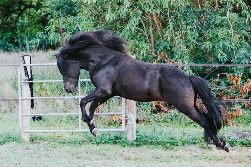 Mit seinem Stockmaß von 146 cm und seiner prächtigen Mähne ist Alvitur ein echter Blickfang. Allein seine Erscheinung lässt Herzen höher schlagen. Alvitur ist ein absolutes Verlasspferd, das mit seinem Reiter durch dick und dünn geht. Er ist brav, leicht zu handeln und wurde vielseitig ausgebildet (Dressur, Extreme-Trail, Springen, Wanderritte, Turniere, Teilnahme am Reitabzeichen III Vorbereitungskurs). Durch seine gute Aufrichtung bietet er auch größeren Reitern ein tolles Reitgefühl. Alvitur ist ein zuverlässiger Hengst, der auch problemlos neben Stuten stehen kann. Er wird freizeitmäßig im Gelände, auf der Bahn und in der Halle geritten und wird nur wegen Aufgabe des Reitsports verkauft. Platz vor Preis.