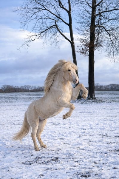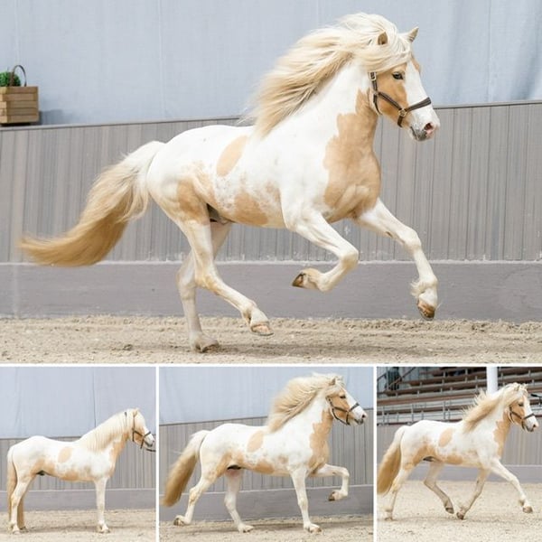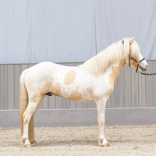IS2020158980 - Glæsir frá Hjarðarholti Du suchst die EIERLEGENDE WOLLMILCHSAU als Deckhengst❓ Groß, absolut brav, einwandfreier Charakter, 5-Gänger, beide Eltern hoch FIZO geprüft, Materialprüfung 8,12 gesamt und als I-Tüpfelchen die einzigartige Farbkombination: Isabellfalbschecke (reinerbig gescheckt) mit blauen Augen. Diese Farbkombination ist nur 2x weltweit in WF registriert (mit seinem Sohn aus 2024) Hier ist er: IS2020158980 – Glæsir frá Hjarðarholti 4-jährig bereits 1,52m groß Abstammung: V: Ísak frá Þjórsárbakka (8,61 gesamt als Viergänger!, 8,84 fürs Gebäude WELTMEISTER 2025 in der YR V1 und T1) - 9,5 für: Tölt und Form unterm Reiter - 9,0 für: Charakter/Gehwille und Galopp - 8,5 für: Schritt und Trab VV: Herkúles frá Ragnheiðarstöðum (8,46-als Viergänger!) VVV: Álfur frá Selfossi (8,47) M: Grímsey frá Arabæ (7,98) - 9,0 für: langsamen Tölt - 8,5 für: Charakter/ Gehwille und Rennpass - 8,0 für: Tölt, Trab und Form unterm Reiter MV: Laxdal frá Efri-Rauðalæk (8,05) MVV: Galsi frá Sauðárkróki (8,44, 10 für Rennpass!) Glaesir ist ein 2020 geborener Isländer Hengst, der im Januar 2023 importiert wurde und am 21.04.2023 ELITE geprüft wurde in Münster Handorf mit: ❗️Gesamt: 8,12❗️ Glaesir hat einen einwandfreien Charakter und steht problemlos neben seinen rossigen Deckstuten mit seinen besten Kumpels zusammen im Paddock und auf der Weide. Er ist für ein Jungpferd extrem gut bemuskelt und weit entwickelt, sodass er als einziger 3-jähriger Hengst deutschlandweit die 100% bei der Entwicklung bei seiner Materialprüfung 2023 geknackt hat. Er ist absolut schreckfrei, kennt bereits Traktoren, LKW´s und Autos und lässt sich von nichts aus der Ruhe bringen. Glaesir wird nun auf das Leben als Reitpferd vorbereitet und sticht vor allem durch seine Motivation und Lernfähigkeit heraus. ALLE Fohlen haben eine Sonderlarkierung, wie: (Erdfarb(falb)schecke, Isabell(falb)schecke, Mausfalbschecke mit blauen Augen etc.). 2026 werden 15 Fohlen von ihm erwartet. Alle Stuten sind direkt tragend geworden. Hier mal zwei Beispiele seines ersten Jahrgangs 2024: Hilma vom Habichtstein: 8,2 Gebäude, 8,0 Charakter und 8,1 Gänge (8,11 gesamt) und zweitbestes Stutfohlen in Hessen Vinur vom Skogahof: 8,1 Charakter, 8,1 Gebäude und 7,9 für die Gänge = 8,0 gesamt, zweitbestes Hengstfohlen in Weser-Ems und somit Elite beurteilt. Er deckt 2026 wieder an der Hand in Thuine (49832). Die Plätze sind wieder gering. Die Stuten werden ausschließlich an der Hand gedeckt. Die Decktaxe beträgt 2026: 1000€, darunter 300€ Anmeldegebühr. Erst nach Abholung der Stute ist der Rest des Betrages fällig. Bei mehreren Stuten, sowie Elite Stuten sind Sonderkonditionen möglich. Da Glaesir 2026 FIZO laufen wird, deckt er erst ab Juli. Nach der FIZO wird die Decktaxe angepasst. Bei Fragen gerne melden. Auf unserem Insta Account: "Islandpferde_vom_skogahof" gibt es tägliche Einblicke und Updates zu unseren Deckhengsten.