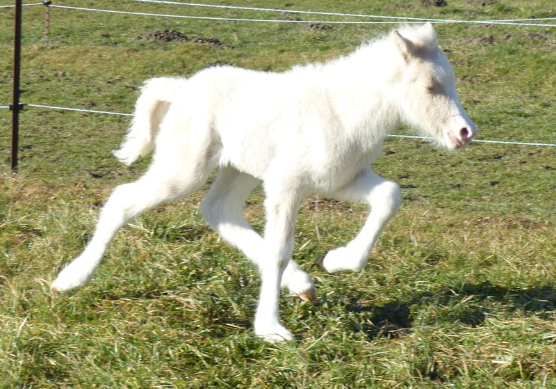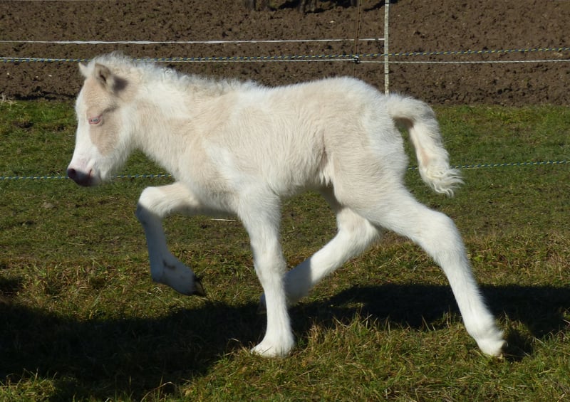 Hallo zusammen, Ich weiß, es ist früh im Jahr, doch glaubt mir, ich erhelle jeden grauen Tag (wie mein Name schon sagt) mit meinem sonnigen Wesen und meiner strahlenden Erscheinung! Meine Mama ist eine sanfte Elfe, mit ganz schicken akzentuierten 5 Gängen und ganz besonnenen coolen Charakter, den man ihrem Papa Ypsilon fran Frihamra nachsagt. Mein Papa ist Kappi von Drei Gleichen ein freundlicher, spannender 5 gängiger Junghengst mit sehr bekannten Vorfahren, wie Álfasteinn frá Selfossi und Illingur frá Tóftum Jetzt zu mir: Ich heiße Birtandi genannt Birti und bin erst eine Woche alt, doch wer mich sieht, verfällt meinem Charme sofort. Mein Frauchen ist leider seit Jahren nur mit Hengstfohlen gesegnet, drum kann sie mich leider nicht behalten, auch wenn sie unter anderen Umständen selbst schwach werden würde. Ich bin ein wahrer Jackpot und einfach ein Gesamtpaket für jeden, der das Besondere sucht. Ich bin ein Doppelcremeschecke mit Blesse und strahlend blauen Augen (Grundfarbe wird noch getestet) und ganglich ein echtes Schmankerl. Ich zeige vom ersten Tag an Tölt ist jeder Geschwindigkeit mit ganz viel Aktion. Man sieht mich immer wieder im Trab schweben. Galoppieren kann ich natürlich auch und im Rennpass so richtig Gas geben ist ebenfalls meine Leidenschaft. Charakterlich bin ist ein ganz höflicher, respektvoller kleiner Kerl. Bislang fallen mir noch keine Dummheiten ein und ich kooperiere gerne mit den Menschen. Die wollen schließlich nur das Beste für mich, sagt auch meine Mama. Lasst euch bitte nicht einschüchtern von meinen Qualitäten, denn wisst ihr was? Ich weiß noch gar nicht, wie man Deckhengst oder Turnierkracher schreibt. Aber ich weiß, dass es unendlich wichtig ist einen Menschen zu finden, dem ich die Welt bedeute und dem ich im Gegenzug meine ganze Welt zu Füßen legen kann. Ich suche einen Menschen, der weiß, welche besondere Verbindung entsteht, wenn man ein Pferd von klein auf begleitet, der mir alles zeig was wichtig ist und vorallem jemanden, der zu schätzen weiß, dass dieses Jahr Ende Februar ein ganz besonderes Juwel geboren wurde, das nur das Beste verdient hat! Mein Frauchen sorgt für alle wichtigen Grundsteine, bis ich Ende August zu dir ziehen kann und es wäre auch möglich, mich noch weiter hier aufwachsen zu lassen, ganz wie du magst! Ich bin schon sehr gespannt, welcher Mensch nur auf mich gewartet hat, damit das Schicksal uns zusammen führen kann!