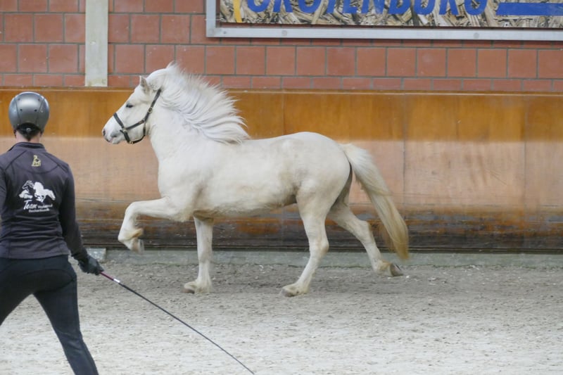 Körungssieger im Rheinland - Draumur vom Veybachhof Unser spannender W8-Gen-Träger Draumur vom Veybachhof konnte sich auf der Jungpferdematerialprüfung in Wickrath hervorragend präsentieren! Belohnt wurde er mit einer 8,06 als Gesamtnote, mit der er natürlich gekört wurde und sogar als Körungssieger des Rheinlands hervorgeht! Draumur ist ein Sohn aus unserer bewährten Zuchtstute Diva vom Phönixhof, die im vergangenen Jahr das zweitbeste Fohlen deutschlandweit -Dux vom Veybachhof- hervorbrachte. Der Vater ist Pegasus vom Recherbusch, von dem Draumur unter anderem seine außergewöhnliche Farbe geerbt hat. Exterieur 8,02 Charakter 8,16 Gänge und Bewegung 8,04 Gesamt 8,06 Richterspruch: Ausdrucksvoller gut aufgerichteter Junghengst mit hoch weiten elastischen Bewegungen und guter Tempofähigkeit im Trab und Tölt und guter Balance. Draumur ist mitlerweile angeritten und zeigt alle Gänge mit viel Fluss, Tempofähigkeit und natürlicher Bewegung ab dem ersten Tag. Zudem hat er durch sein tolles Gebäude immer eine gute Form, ist leicht in der Hand und sehr gut ausbalanciert. Wir planen Draumur dieses Jahr Fizo vorzustellen.