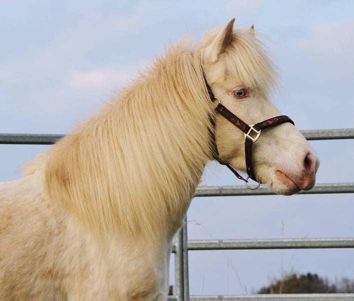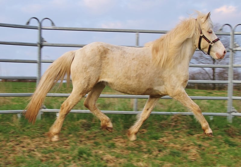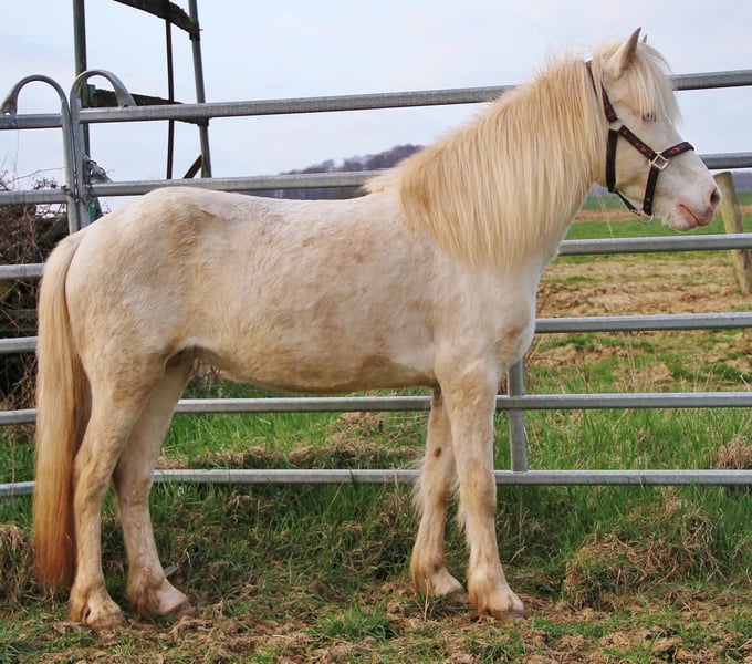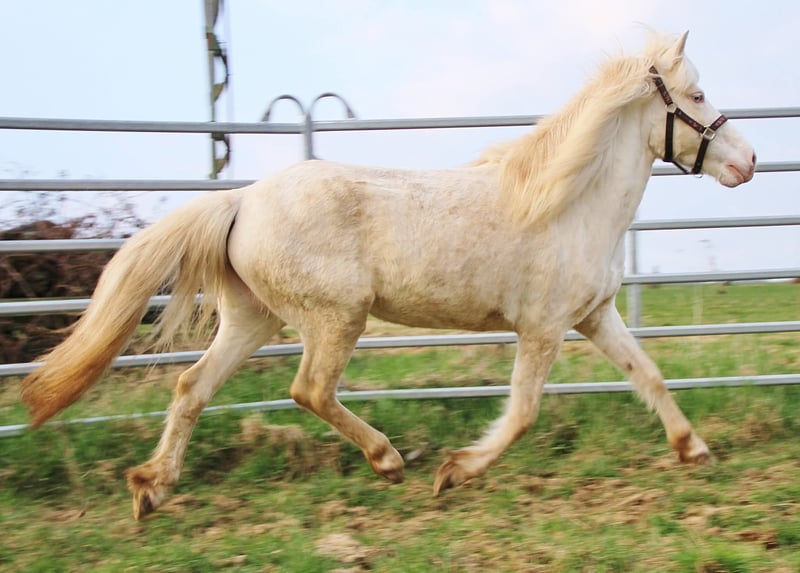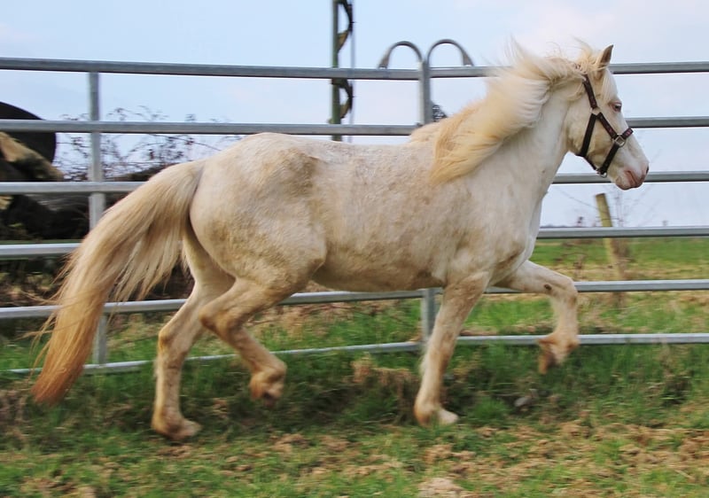 Títanía die Elfenkönigin - Perlinoschimmel mit blauen Augen (AAEeCRCRGgSW1/N) - geboren 2016 sucht neue Aufgaben... sie ist bei mir geboren, Ekzemfrei, geimpft, regelmäßig entwurmt und Hufe gepflegt. Im täglichen Umgang ein braver Schatz - steht geduldig und brav beim Putzen, ist immer easy zu Halftern, Führen und Händeln. Ist Verlade- und Hufpflegefromm. Eine charakterbrave ehrliche Stute die stehts ihrer Umwelt offen begegnet und mit arbeitswilligem kopfklarem überwiegend ausgeglichenem Temperament überzeugt. Sie wurde mit 136 Stm ins Stutbuch 1 eingetragen, bringt dabei ein etwas sportliches robustes Gebäude mit viel Ausdruck und guter Auftrichtung mit. Hervor zu heben ist ihr gut angesetztem Hals und der ausreichend lange nicht zu kurze Rückem. Aktuell hat sie nur Weidekondition sollte aber mit systematischem Muskelaufbau als Reitpferd auch erwachsene Reiter bis max. 70 kg gut abdecken können. Sie war die letzten Jahre Zuchtstute. Ihre Nachzucht überzeugte mit ihrem unkomplizierten Charakter, schönen Gängen und ansprechendem Gebäude, guter Größe wie auch Farbe. Durch eine Komplikation vor und nach der Geburt ihres letzten Fohlens ist ein erneuter Zuchteinsatz ohne vorherige Abklärung durch einen Tierarzt nicht Ratsam. Daher wird sie ausdrücklich nicht als Zuchtstute abgegeben ! Títanía ist Fünfgangveranlagt auch wenn man ihr es Freilaufend nicht ansieht da sie Grundsätzlich bevorzugt ihre drei gut und sicher vorhandenen Grundgänge zeigt. Ihr Schritt ist immer taktklar und sauber ohne Passtendenz. Ihr Trab ist sicher, raumgreifend und mit Schwebephase bis ins hohe Tempo vorhanden. Galopp zeigt sie auf der Weide je nach Bodengegebenheit und Tagesform etwas gelaufen bis bergauftendenz. Im Galopp lässt sich zeitweilig erahnen das der Fünfte Gang vorhanden ist, denn gezeigt hat sie ihn bis dato nicht. Tölt wurde schon öfters gesichtet mindestens im Ansatz aber auch ganze Strecken. Ihre Töltveranlagung ist bis ins hohe Tempo vorhanden, da sie schon öfters aus schnellem Trab in ebenso schnellen Tölt gewechselt hat. Aktuell ist sie noch nicht eingeritten und könnte aber jederzeit mit ihrer Ausbildung zum Reitpferd starten. Ich schätze sie so ein das ihr Beritt ein Klacks wird und sie mit entsprechender Ausbildung für Erwachsene wie auch Kinder geeignet sein wird und ich möchte auch nicht ausschließen das sie ein potentielles Verlasspferd werden kann, denn die Grundvoraussetzungen dafür hat sie. Da sie noch ein gesundheitliches Handicap mitbringt welches ihre Reiterliche Nutzung aber nicht beeinträchtigen sollte wird sie unter Wert abgegeben. Aktuell steht sie im Nordsaarland und kann gerne angeschaut werden. Ein Video gibt es nicht und ist derzeit auch nicht umsetzbar. Die Fotos sind ganz Aktuell.