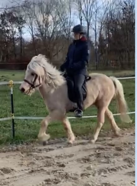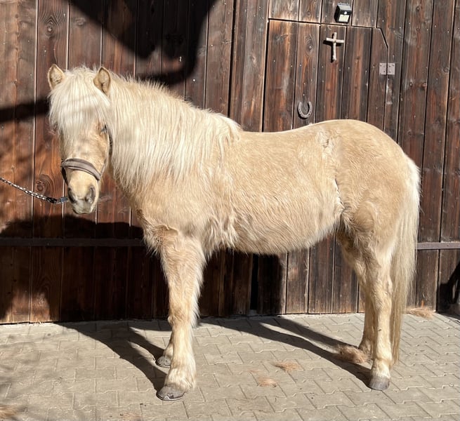 Juni is a sweet and very pretty mare. She is a five-gaited horse with clearly separated, easy-to-ride gaits. Her lively, always responsive tölt is a real pleasure to ride, is rhythmically clear, and also quite spirited. She has a very kind, curious, and lively personality and is very people-oriented. She enjoys being pampered and engaging with her handler. Juni loves to go out riding with a second horse. She rides well in company and doesn’t require much riding experience. When riding alone, she occasionally hesitates to proceed, wondering if she really needs to go forward. She needs a rider who can reassure her that everything is fine. If Juni feels unsure, she is more likely to stop than to push through. In the arena, she is also willing to work alone and does what is asked of her. After the winter break, she is being trained again by a mobile B-level trainer, who praises her highly. She is neither bucking nor weaving. Farrier-friendly. Juni is healthy, but she sometimes coughs when starting to move. Therefore, she is fed moist hay. At a height of 1.36 meters, I can very well imagine Juni being suited for an enthusiastic teenager with some riding experience who wants to grow and develop alongside her. Alternatively, she would also be suitable for a light adult rider (up to 70 kg). Juni is happiest when she has her "special person" by her side.