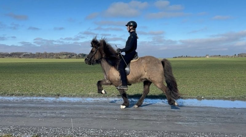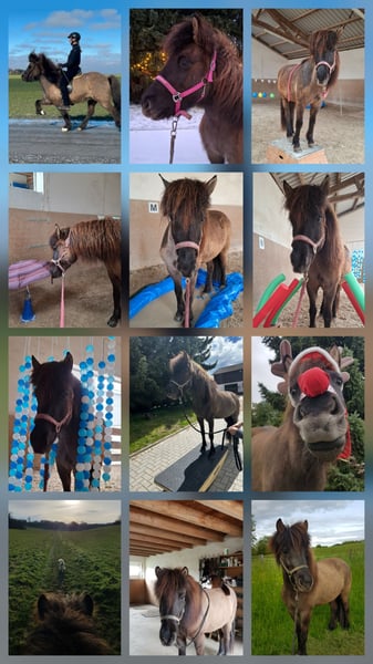 Zum Verkauf steht eine 2014 geborene, deutschgezogene Isländerstute. - ca. 1,35 m groß - klar getrennte Gänge, leicht zu reitenden Tölt - fleißig mit Spaß bei der Arbeit - sehr intelligent, höflich, freundlich - lieb im Umgang gegenüber Tieren, Kindern und Menschen - liebt Bodenarbeit, Stangenarbeit und Freispringen - wäre auch gut geeignet für Zirkuslektionen und Freiarbeit - ist silbernes Reitabzeichen gelaufen - kennt Halle, Reitplatz und Gelände - auch als Handpferd und mit Hund als Begleitung - regelmäßig entwurmt und geimpft - jährlich dem Zahnarzt vorgestellt - regelmäßig dem Physio vorgestellt - schmiede- und verladefromm - Aufgrund ihrer Abstammung ist sie auch interessant für die Zucht: - Vater ist Sólmundur frá Hlemmiskeiði 3, FIZO gesamt 8,29 - Mutter ist Tilvera frá Akranesi, FIZO gesamt 8,36 - In der Herde ist sie unauffällig und rangniedrig - gesund, kein Ekzem, keine Atemwegserkrankung - OP-Versicherung besteht seit 2019 und kann übernommen werden Reitvideos liegen vor. Platz vor Preis.