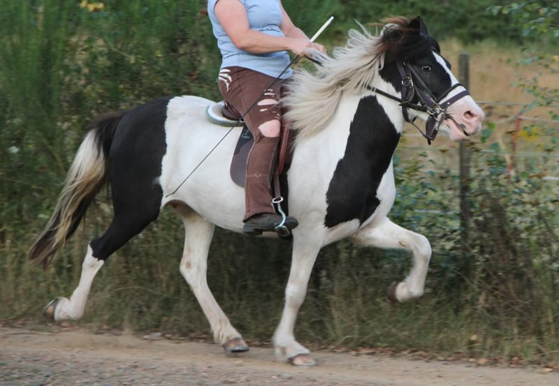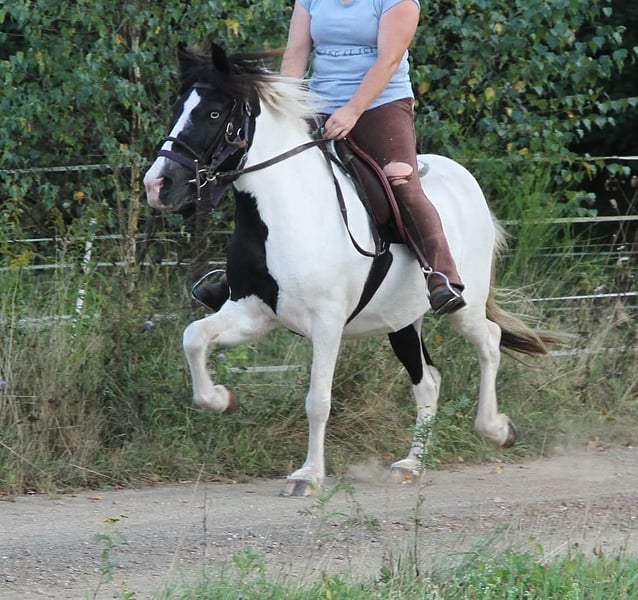 Genesis wird wegen immer wieder auftretendem akutem Zeitmangel und dadurch Reduktion des Pferdebestandes günstig in erfahrene Hände abgegeben. Sie ist seit mitte 2024 unter dem Sattel, leider mit immer wieder aus Zeitmangel bedingten längeren Standpausen. Daher nur gut angeritten und benötigt noch weitere Ausbildung. Genesis ist und wird kein Anfängerpferd und ist auch nicht für ängstliche Reiter geeignet. Sie bringt ein zeitweilig etwas spritziges Temperament mit, meistens wirkt sie ausgeglichen kann aber Situationsbedingt zeigen das mehr in ihr steckt. Fährt sie ihr Temperament hoch wird sie fleißiger , ausdrucksstarker und guckig. Daher nur für erfahrene Reiter die ruhig bleiben und auch mit etwas mehr Temperament zurecht kommen. Sie ist bis dato Unartenfrei und routiniert brav im Händling, Verladefromm und auch Schmiedefromm. Aktuell leider nicht ganz Geländesicher was sich ggf. dem ständigen mal geritten und mal nicht geritten werden geschuldet sein kann. Genesis ist Fünfgängig wird derzeit eigentlich nur viergängig geritten. Ihr Schritt ist immer Freilaufend und unter dem Sattel taktklar ohne Passverschiebung. Freilaufend zeigt sie meistens Trab und auch unter dem Sattel ist dieser einfach abzurufen. Zeitweilig läuft sie auch auf der Weide Tölt wobei sie aber den Trab deutlich bevorzugt. Unter dem Sattel lässt sie sich einfach antölten und benötigt nur noch gelegentlich Korrekturen des Taktes oder Tempos. Auf der Weide zeigt sie einen guten Galopp mit Bergauftendenz. Unter dem Reiter wurde sie noch nicht viel im Galopp gearbeitet und benötigt dort noch mehr Training. Ihr fehlt es im Galopp mit Reiter noch an Kraft, Biegungsfähigkeit und Balance daher kann es passieren das sie im Kreuzgalopp anspringt oder auch auf flachen Wegstrecken nach einigen Sprüngen in den Pass fällt. Bergauf lässt sie sich einfacher Galoppieren und springt da auch sehr schön. Probeweise wurde sie mal als sie in den Pass gefallen ist angetrieben und beschleunigt dann auch im Pass, sie kennt die Hilfen zum legen nicht und wird auch bis dato normalerweise nicht im Pass geritten. Es wurde mit ihre angefangen seitwärtstreibene Hilfen zu üben wie auch Rückwärtsrichten. Genesis ist 2013 geboren seitdem gesundheitlich Unauffällig, geimpft, entwurmt, Hufe gepflegt. Sie bringt volle Papiere mit und wurde in den letzten Jahren auch in der Zucht eingesetzt. mit 7,9 für Gang und Interieur ins Stutbuch 1 eingetragen. Ihre Fohlen überzeugten mit guten Gängen, Farbe und Charakter. Ihr erster Nachkomme ist schon länger unter dem Sattel und überzeugt mit Gang und Rittigkeit. Die meisten ihrer Nachkommen sind größer wie sie selbst geworden auch mit kleineren Hengsten. Genesis kann jederzeit noch einmal als Zuchtstute eingesetzt werden sofern man dies möchte. Bei Zuchteinsatz ist sie ein Farbgarant da sie getestet reinerbig Schwarz ist und dadurch selbst mit einem Fuchshengst niemals Fuchsbasierte Fohlen fallen können. Zusätzlich kann sie zu jeweils 50 % das Tobiano- und Splash- Gen vererben. Das Video ist das aktuelleste was ich habe, sie läuft da mit Kunststoffbeschlag der fast gleichzusetzen wie Barhuf ist. Sie hatte aber auch schon normale Hufeisen drauf und steht brav beim Schmied. Aktuell ist sie durch die immer wieder auftretenden Standpausen etwas zu dick und würde sich daher sehr über eine kontinuierliche Aufgabe als Reitpferd oder nochmal Zuchtstute freuen. Gerne kann sie angeschaut und vorgeritten werden. Probereiten gegen Gebühr die bei Kauf auf den Kaufpreis angerechnet wird möglich. Auf Wunsch kann der Käufer eine Aku veranlassen. Auf Wunsch und gegen Kostenerstattung Bedeckung nach Absprache. Der aktuelle Preis ist ein absoluter Festpreis und nur gültig bei Abholung und Zahlung bis spätestens Ende März 2026. Sollte sie dannach noch da sein werde ich mit ihr andere Wege gehen was auch bedeutet das sie so günstig sicher nicht mehr zu haben sein wird.