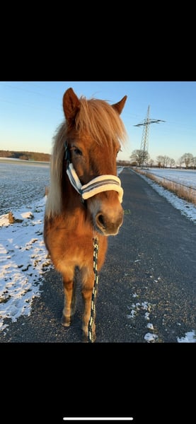 Ich biete hier zum Verkauf meine schöne Stute Soka an. Sie ist eine total liebenswerte und hübsche Fuchsstute mit heller Mähne. Soka ist 13 Jahre alt und wurde lediglich freizeitmäßig von mir geritten. Überwiegend im Gelände. Sie kam im Herbst 2020 aus Island und seit dem ist sie bei mir. Soka verfügt über alle 5 Gangarten. Ihre Lieblingsgangart ist der Tölt. Sie ist sehr bequem zu sitzen und macht total viel Spaß zu reiten. Für Anfänger ist sie nicht geeignet, da sie ein sehr motiviertes und lauffreudiges Pferd mit mittlerem Temperament ist. Sie ist immer gut zu regulieren. Vor Treckern o.Ä. hat sie keine Angst, Steine hingegen findet sie hin und wieder mal etwas gruselig. Sie wird nur aufgrund meiner Schwangerschaft abgegeben. Daher gilt auch Platz vor Preis. Leider hat Soka in den letzten Jahren Sommerekzem entwickelt, welches mit einer Ekzemdecke allerdings gut zu Händeln ist.