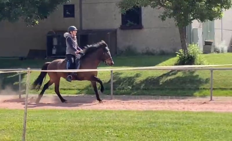 Since I am looking to find a pony for younger children in the near future, I am offering an attractive price for quick decision-makers ;) A well-ridden, brave, and reliable four-gait mare with a lot of fun factor. She was born in 2013 and stands approximately 1.40 meters tall, with a solid build. She has an excellent pedigree, making her interesting for both breeding and competition. She also provides plenty of enjoyment in leisure riding, as she has an easy-to-ride tölt despite her four-gait predisposition. I have taken her to various riding centers for clinics, and she is accustomed to traveling; it does not bother her at all. She is familiar with riding in arenas, indoor halls, on the riding yard, and in the terrain. She is suitable for both adults and teenagers, and she also comfortably carries larger, well-ridden children or is used for leading with small children on her back. She is regularly vaccinated, dewormed, and fed with mineral feed. She is used to being shod and barefoot and has very good hoof quality. She is also calm about the farrier and loading. As an import pony, she wears a blanket during the summer as a precaution, which will be included. She is herd-compatible, used to open stables as well as box stalls, and tolerates normal hay. Several riding videos are available, and she can be visited and test ridden at any time. Location: 2.5 hours from Cologne.