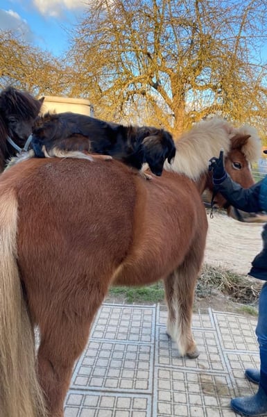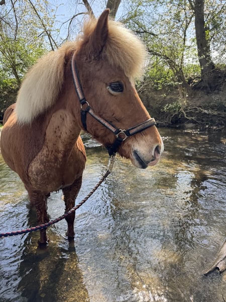 Leysing impresses with her fearless nature, her playful spirit, and her desire to please. She is perfect for anyone seeking a loyal partner for leisure riding and adventures! Leysing is equally confident in the terrain both during the day and at night, riding alone or in a group. She is absolutely unshakable and very sure-footed. She enjoys working in the indoor arena or on the riding track, knows basic dressage figures, and excels in lateral movements. She loves circus tricks (with or without a dog), loads onto the trailer easily, and is uncomplicated with the farrier and veterinarian. I have kept her solely as a leisure horse. However, several trainers have confirmed during lessons that she could certainly compete in shows. Since I have not been interested in competing, she has not had that experience so far. I can imagine Leysing as both a family horse and a suitable mount for younger children, or, with proper training, for ambitious riders. I had the pleasure of getting to know her father—an absolute treasure. He competed successfully in youth squads and at various competitions. In her youth, Leysing suffered from a periodic eye inflammation; both eyes were operated on, during which the affected fluid was replaced. Since then, she has full vision in her left eye, while she perceives shadows with her right. However, this is not noticeable to anyone, and many are surprised when I mention it. She has always been kept in small herds in an open stable and on summer pastures. She is familiar with mixed and mare-only herds, and after a normal acclimatization period, she shows herself to be compatible and uncomplicated in these groups. She can be fed hay in portions or with 24-hour access. I have regularly dewormed and vaccinated her, and her teeth have been checked regularly with everything being normal. An osteopath and chiropractor have also examined her periodically. Furthermore, she is eczema-free. Due to the need to give up horsekeeping entirely, Leysing is available with all accessories. I am happy to include her rugs, grooming supplies, saddle (Summer Opus), bridle, riding pad, lunging girth, lunge line, and more. I wish Leysing the best possible home with a suitable person. This is not a distressed sale.