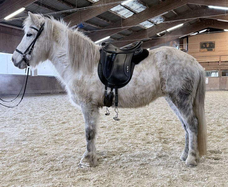 Hekla fra Langtved Stute, 1,43m groß Schimmel, *2012 in Dänemark Fünfgängerin, viergängig geritten ist im Sport bereits Fünfgang gelaufen ekzemfrei, entwurmt, beschlagen, geimpft✅ AKU vorhanden✅ V: Erfingi frá Grafarkoti 8,13 (Ext 8,0 Re 8,22)‼️ VV: Klettur frá Hvammi 8,49 (Ext 8,43 Re 8,54)‼️ M: Fluga fra Gl. Essendrup 7,58 (Ext 7,80 Re 7,43) MV: Þjálfi frá Keldudal 7,93 (Ext 7,83 Re 8,03) Hekla ist eine richtig hübsche Schimmel Stute mit einem Charakter aus Gold. Sie ist ein absolutes Verlasspferd, egal wo man sie reitet. Mit ihren 14 Jahren bringt sie Erfahrung und Ausbildung mit, welche sie zum perfekten Lehrpferd machen. Auch Kinder trägt sie ganz selbstverständlich auf sich rum. Wer ein Pferd für die ganze Familie sucht wird hier fündig. Ihre Gänge sind klar getrennt und ganz einfach zu reiten. Ihr Tölt ist auch von weniger geübten Reitern ganz mühelos abzurufen. Ihr Galopp ist gut gesprungen und ganz weich zu sitzen. Sie zeigt sich in neuen Umgebungen oder Situationen völlig unbeeindruckt und bleibt selbstsicher bei ihrer Sache. Hekla kann sogar Turniererfahrung vorweisen und ist dort im Viergang, im Fünfgang und im Tölt vorgestellt worden. 2025 durfte sie ein Fohlen bekommen und war auch hier vorbildlich und eine absolute „Vorzeigemama“ 😍. Ihre durchgehend geprüfte und wirklich interessante Abstammung machen Sie definitiv auch für die weitere Zucht interessant. Freizeit, Zucht, Sport, Einstieg, Kurse und sogar Trainerscheine können mit ihr zusammen gemeistert werden. Einfach eine absolute Allrounderin. Aufsitzen, wohlfühlen und einfach nur genießen ist bei dieser Stute das Motto.♥️ Wer die schöne Hekla kennenlernen und probieren möchte, kann dies gerne nach Absprache bei uns in A-5221 Lochen am See tun.