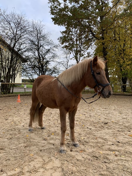 We are looking for a loving new home for our beautiful Icelandic mare (born 2011, approximately 4.7 hands). This charming five-gaited mare impresses primarily with her exceptionally friendly, human-oriented character and her great joy in working with people. Our mare is in overall good health, apart from a finding in the cervical spine. As a result, she is no longer regularly ridden by us. Current CT scans from the clinic are available and can be viewed. According to her veterinarian, this is not a hereditary condition, so she might also be of interest for breeding purposes. She was awarded as a foal but has not yet had any foals herself. **Pedigree:** V: Kongur v. Lichtenberg VV: Sjoli fra Dalbae M: Nott v. Sydri-Bru MV: Aspar v. Saudarkroki She exhibits a slight lameness in the trot on the circle. Character-wise, she is a true sweetheart: curious, attentive, very human-oriented, and always friendly in her interactions. She communicates subtly and enjoys working with people. For this reason, we can particularly imagine her in horse-assisted coaching or therapy work without a rider. She also shows great patience and kindness when working with children. She is familiar with and loves groundwork, mastering various classical exercises at the hand, as well as some small tricks. Additionally, she knows long-rein work and ground driving. Her eagerness to learn and motivation make her versatile and easy to engage with. In terms of care, she is robust and uncomplicated (hay, part-time pasture, mineral supplement). She currently lives in a herd in an open stable, tends to be lower in rank, and has experience with both mixed herds and all-mare groups. No eczema or asthma. As typical for her breed, she should not be kept on pasture 24/7 permanently. We wish for her a respectful, loving environment with plenty of human attention, where she can continue to receive tasks and stimulation. Further information is gladly provided personally upon request.