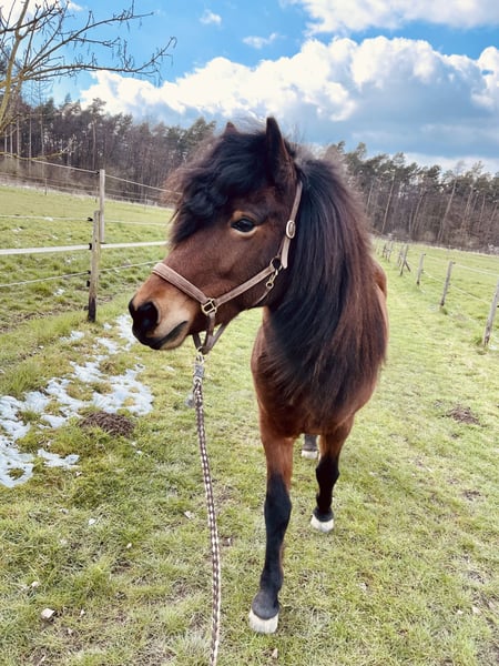 Ólafía is approximately 138 cm tall, four-gaited, and an absolute expert on trail riding. Since her import at the end of 2019, I primarily take her out on rides in the countryside. She is always eager to move forward, yet very easy to control (she responds to voice commands), and remains flexible whether she is alone or in a group. She does not push through, buck, or rear, and confidently walks anywhere she is led. In a herd or with other horses, Ólafía is always a very friendly lead mare. Two years ago, after a stable change, she developed mild eczema for the first time, which is manageable with a blanket in summer or possibly without a blanket in a different stable. Unfortunately, I no longer have enough time to dedicate to her properly. It is with a heavy heart that I am looking for a new, loving home for her.