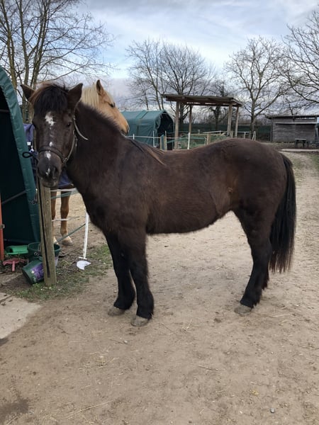 Te koop: lieve IJslandse merrie. Ze is gemakkelijk in de omgang en goed te combineren met andere paarden. De vonk voor het rijden van gangenpaarden is helaas niet overgesprongen bij mij. Omdat ze graag werkt en van menselijk gezelschap houdt, wil ik haar niet alleen als bijzitter wegdoen. Ze heeft geen eczeem, hoefbevangenheid, astma of hooistofallergie. Bij interesse kunnen ook video's worden opgestuurd.