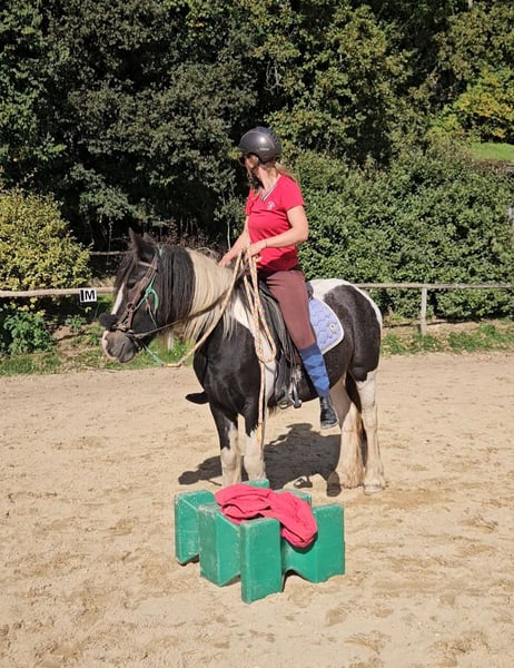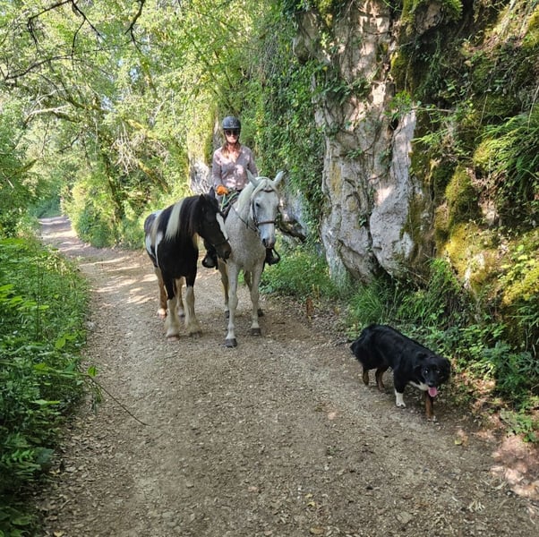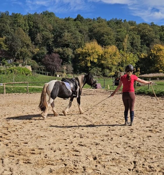 ✅Plein papiers ✅Devrait toiser les 1'48m (mère 1,52 - père élite 1,50) ✅Prédebourrée, dans une approche éthologique ✅montoir ok ✅Supporte parfaitement la selle et filet ✅Travail à pied ✅Douche, eau,... ✅Aime faire des exercices, balades, ✅profil qui se démarque pour randonnées ou cross ✅Douce, sensible au caractère affirmé ✅ Esprit explorateur, découverte ➡️À continuer à travailler : le montoir et les allures (déjà abordées, en cours) . ➡️Ne connaît pas le box (toujours en près ou paddock avec abri
