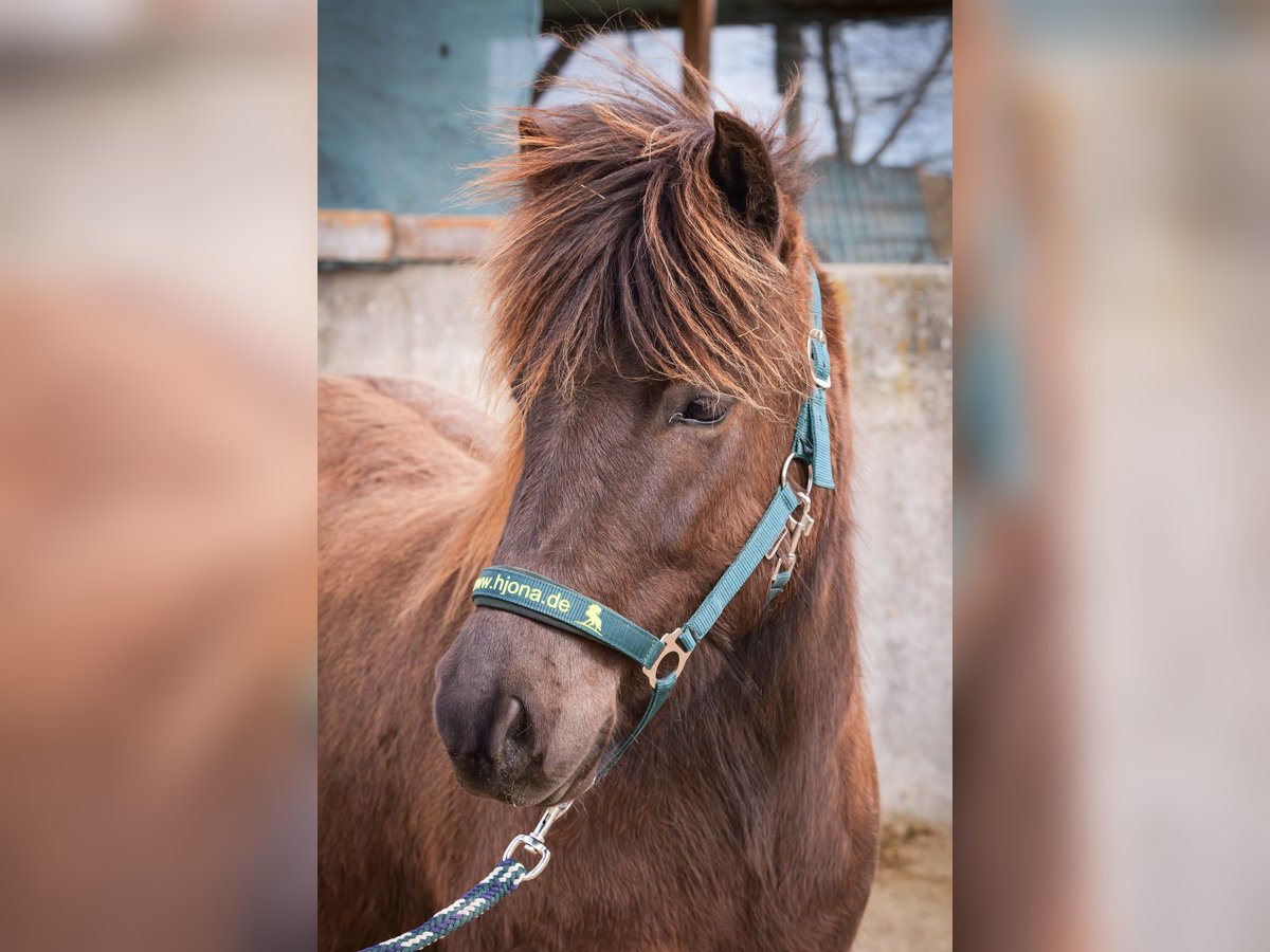Nova ist am 08. Mai 2023 geboren und wächst artgerecht im Herdenverband auf. Sie genießt knuddeln mit dem Menschen und ist regelmäßig entwurmt und mit Mineral versorgt. Sie kennt bereits Halfter und selbstverständlich Hufe machen und ist grundimmunisiert. Nova ist auch schon Hänger gefahren und zeigt sich recht mutig bei neuen Dingen. Sie ist gut entwickelt und kräftig gebaut. Auf der Weide zeigt sie gute Grundgangarten und viel Tölt in den Übergängen. Ihre Farbe nennt sich Smokey Black oder Rappisabell, dh. sie ist Rappe mit einem Cremegen, das ihr die wunderschöne Schokofarbe verleiht. Ihre Mutter war jahrelang Reitpferd, wurde viergängig geritten mit viel Begabung für Dressur bei hoch akzentuierten Bewegungen. Es ist ihr zweites Fohlen und sie beweist sich als hervorragende Zuchtstute, nicht zuletzt durch ihren starken genetischen Background. Nova’s Vater ist ein junger Hengst mit guter Abstammung, fünfgängig, der inzwischen privates Luxus-Reitpferd ist. Er ist sehr einfach und kooperativ mit gut getrennten Gängen und sehr schöner Selbsthaltung. Nova wurde an der IPZV Fohlenprüfung sehr gut bewertet: Exterieur 8,0 Interieur 8,0 Gang 7,8 Richterspruch: Sehr gut entwickeltes Fohlen mit sehr guter Aktion und Raumgriff, viel Tempo im Trab, bei momentan etwas vorgelagertem Körperschwerpunkt, hat Tölt im Übergang gezeigt. Ihr stehen alle Wege offen und sie bringt alles mit, was man sich von einem späteren Reitpartner wünscht. Aber auch für die Weiterzucht wäre sie interessant. Nova kann jederzeit in ihr neues Zuhause umziehen.