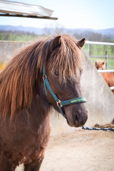 Jument, cheval islandais, née le 08.05.2023 Père : Tveggi vom Grenzstein Père du père : Tangó vom Melinokus Grand-père : Þróttur frá Hvalnesi 8.34 Mère du père : Frosti frá Heiði 8.22 Mère : Nauma vom Semriach (livre d'élevage 1) Père de la mère : Selur vom Lipperthof 8.03 sans passeport Grand-père de la mère : Náttfari frá Ytra-Dalsgerði 8.54 Nova est née le 08 mai 2023 et grandit de manière appropriée en troupeau. Elle aime les câlins avec les humains et est régulièrement vermifugée et nourrie avec des minéraux. Elle connaît déjà le licol et le parage des pieds et est entièrement vaccinée. Nova a également déjà voyagé en van et se montre courageuse face à de nouvelles expériences. Elle est bien développée, grande et robuste. Au pré, elle montre de bonnes allures de base et beaucoup de tölt dans les transitions. Sa couleur s'appelle Smokey Black ou Rappisabell, c'est-à-dire qu'elle est noire avec un crème qui lui donne une magnifique couleur chocolat. Sa mère a été cheval de selle pendant de nombreuses années, montée en quatre allures avec beaucoup de talent pour le dressage et des mouvements très accentués. C'est son deuxième poulain et elle prouve être une excellente jument de reproduction, grâce à son fort bagage génétique. Le père de Nova est un jeune étalon avec une bonne lignée, monté en cinq allures, actuellement en cours de débourrage. Il se montre très simple et coopératif avec des allures bien séparées et une très belle tenue. Nova a été très bien évaluée lors de l'examen des poulains de l'IPZV : Extérieur 8,0 Intérieur 8,0 Allure 7,8 Avis du juge : Poulain très bien développé avec une très bonne action et portée, beaucoup de rythme au trot, avec un centre de gravité légèrement en avant pour le moment, a montré du tölt dans la transition. Toutes les voies s'offrent à elle et elle possède tout ce que l'on attend d'un futur partenaire de monte. Mais elle serait également intéressante pour la reproduction. Nova peut déménager à tout moment dans son nouveau foyer.