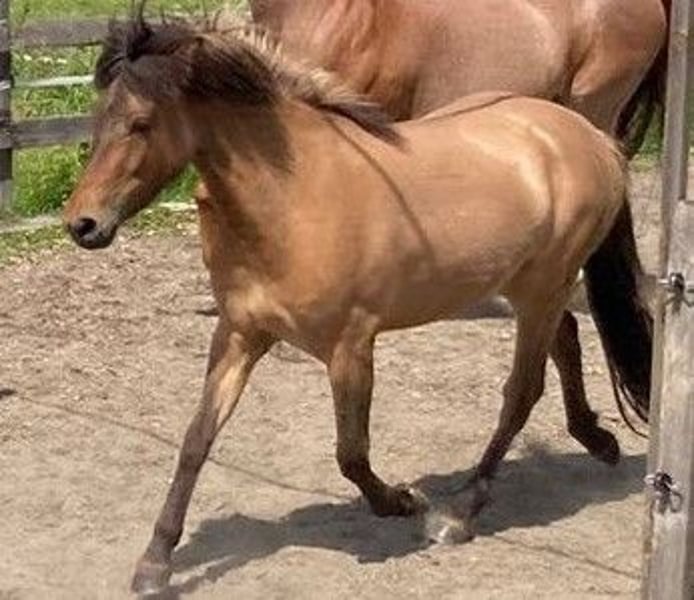 Verkaufe liebe Islandpferdestute Zum Verkauf steht eine wunderschöne Islandpferdestute, geboren im Jahr 2022. Sie ist eine elegante Falbe mit einem zu erwartendem Stockmaß von 138 cm und somit perfekt für Freizeitaktivitäten geeignet. geht bereits als Handpferd mit und kennt Verkehr, Eisenbahn und alle üblichen Geräusche. Die Stute besticht durch ihr freundliches Wesen und ihre Bereitschaft, ihre Reiter zu begeistern. Ideal für Reiter, die ein junges, Pferd gerne selbst ausbilden möchten. Bei Interesse stehe ich gerne für weitere Informationen und eine Besichtigung zur Verfügung.