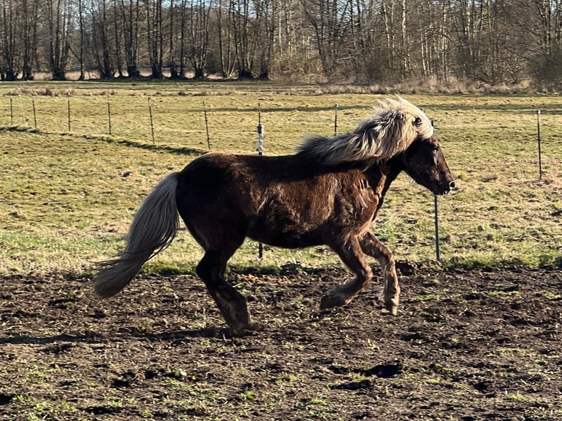 Saeta by Seimur, last daughter of the legendary Vinda vom Adlerhop and the elite stallion Stakkur by Seimur. Her siblings are all just as great as she is! A very fine character and character, for the color wind-colored, rather unusual! Her color is called brown-silver (brown wind colors). She has a 5-color disposition and is expected to reach a final height of approx. 1.44m. Suitable for sport, leisure and breeding. Saeta is a treasure, whoever wants her must be very special, because she is looking for her human. She also stands in the young mare pasture 1 - 4 years old and next to the young stallions. More details via PN or in person.