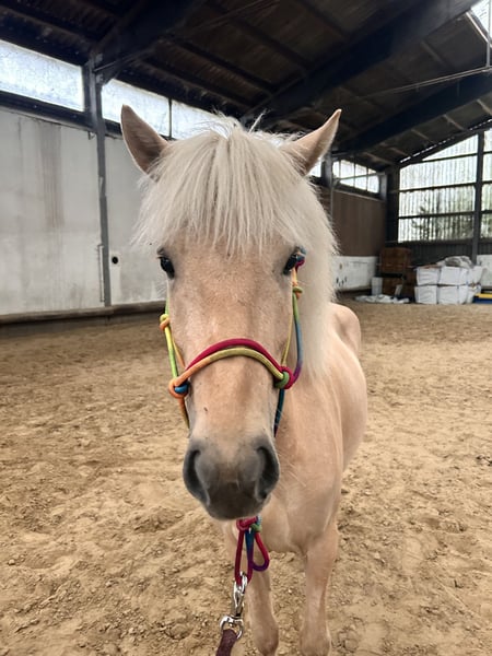 Wunderschöne junge Islandstute in besonderer Isabellfarbe sucht ein erfahrenes Zuhause. Sie ist vier Jahre alt und noch kennt noch nicht viel - ein echter Rohdiamant für jemanden mit Gefühl und Erfahrung im Umgang mit jungen Pferden. Sie ist derzeit 1.40 m groß, lässt sich brav putzen, anbinden, führen und gibt Hufe. Mehr Ausbildung kennt sie noch nicht, da sie erst im Dezember 2024 aus Island gekommen. Vermutlich ist sie fünfgängig veranlagt, bisher zeigt sie sich vor allem im Trab und Galopp. Mit der richtigen Ausbildung wird sie sicher einmal ein ganz besonderes Reitpferd für den gehobenen Freizeitbereich.