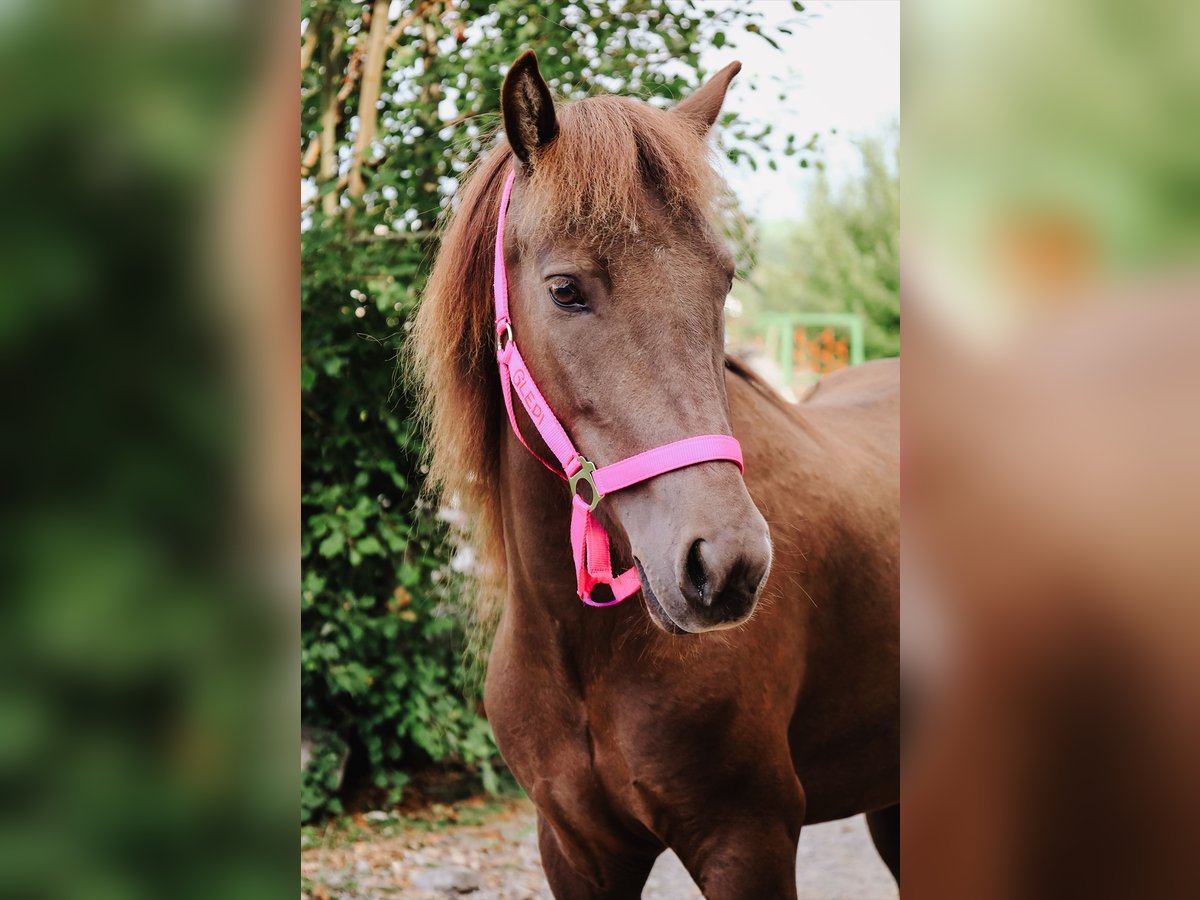 Onze Gleði van Gruber-Gut, *merrie, geboren in 2021, is een Goldrappe / Smokey Black, ongeveer 1,30 m hoog en beschikt over een vijfgangs aanleg met veel natuurlijk tölt. Afstamming: Vignir van der Martinsnueck x Gyðja vom Törring. Gleði is enkele maanden geleden voorzichtig bereden en wordt sindsdien regelmatig verder getraind. Ze toont zich daarbij alert, zeer leergierig en werkplezierig, maar brengt ook temperament en energie mee. Voor beginners is ze daarom niet geschikt, maar voor ervaren ruiters die plezier hebben in de opleiding van jonge paarden, is ze een spannende partner met ontwikkelingspotentieel. Tijdens de training gedraagt ze zich ongedwongen en onbevreesd, vooral bij cavaletti-werk en in de dualgassen werkt ze geconcentreerd en gemotiveerd mee. Daarnaast heeft ze al ervaring opgedaan op cursussen bij Christopher Weiss. Momenteel wordt ze door een 17-jarige amazone passend voor haar leeftijd verder opgeleid. Gleði is gezond, eczeemvrij en regelmatig bij de hoefsmid geweest. Een actueel rijvideo sturen wij graag bij serieuze interesse toe. PK: €5.500 - €7.000 – Plaats vóór prijs! 📍 Locatie: 5204 Straßwalchen (Oostenrijk)