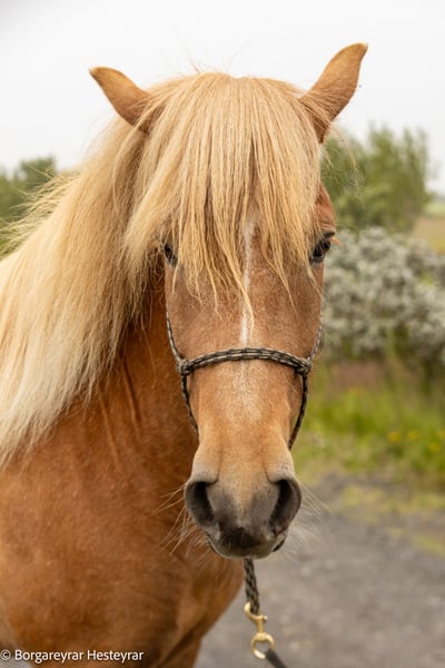 Harpa es una hermosa yegua de 4 años, de color alazán, con una llamativa mancha blanca en la cara. Acaba de comenzar su entrenamiento bajo la silla y actualmente trabaja muy bien a la cuerda. Harpa tiene un temperamento excelente: nunca se asusta, se acerca a las personas de manera voluntaria y disfruta de la interacción. Procede de linajes destacados: • Padre: 8.32 • Madre: 7.68 Con su pedigrí, carácter amigable y un inicio prometedor, Harpa tiene un gran potencial para la competición, el ocio o la reproducción.