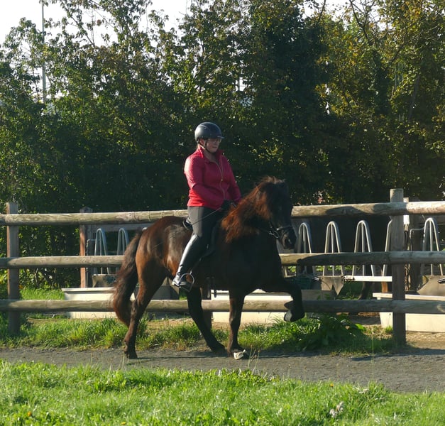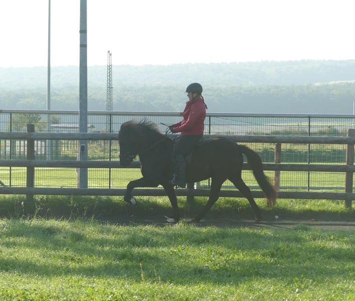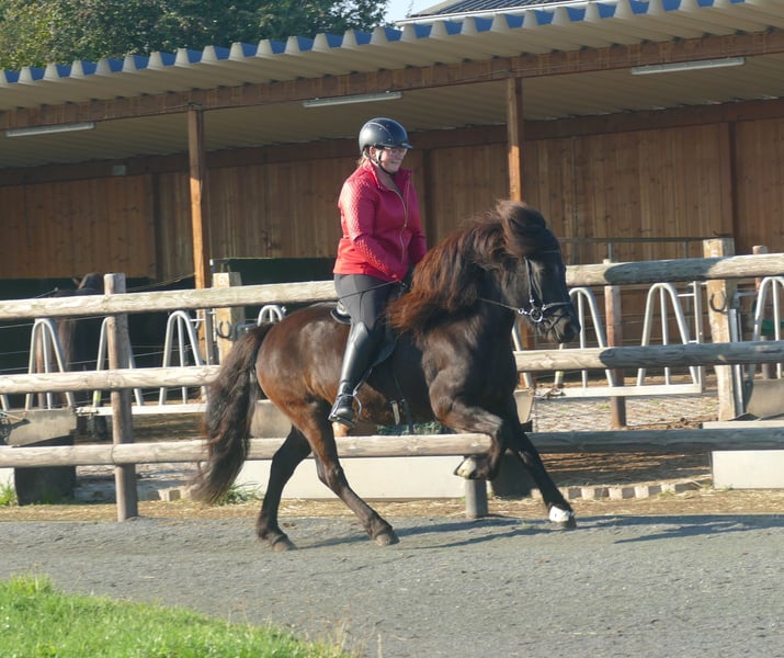 ✨ Charakter, Gänge & Ausstrahlung in Vollendung! ✨ Sörladis von Roderath *2020 / 140 cm Diese hübsche und elegante Rappstute erobert jedes Herz im Sturm! Mit ihrem offenen, freundlichen Wesen und ihrer großen Arbeitsfreude ist sie nicht nur ein Pferd zum Reiten – sie ist ein echter Partner fürs Leben. 💎 Gangarten zum Verlieben Tölt: Immer taktklar, butterweich, leichtfüßig – ob mit lockeren Zügeln oder in schöner Anlehnung, sie lädt zu endlosen Ritten ein. Trab: Elegant und klar getrennt vom Tölt– ein Bild voller Ausdruck. Galopp: Sicher, nicht zu schnell und täglich besser bergauf! Schritt: Gelassen, schreitend und zuverlässig – ideal für entspannte Ausritte. 🌿 Verlasspferd im Gelände Ob alleine oder in der Gruppe, vorne, mittig oder hinten – sie geht überall souverän mit. Verkehr, Züge, LKWs, Hunde oder Wasser? Kein Problem! Sie kennt alles und bleibt dabei immer ruhig und zuverlässig. 🎓 Ausbildung & Reiteigenschaften Trotz ihres Alters ist sie bereits hervorragend ausgebildet: fein an den Hilfen, leicht in der Hand, extrem rittig. Schenkelweichen, Schulterherein – für sie eine Selbstverständlichkeit. Ein Pferd, das auch anspruchsvolle Reiter begeistert und dabei immer Spaß macht. 💖 Das gewisse Etwas Diese Stute vereint Schönheit, Charme, tolle Reiteigenschaften und Verlässlichkeit. Wer sie einmal erlebt hat, wird sie nicht mehr missen wollen – ein echtes Herzenspferd, das jeden Tag Freude schenkt. 👉 Suchst du ein Islandpferd, das Charakter, Qualität und Freude am Reiten perfekt verbindet? Dann ist diese Stute dein absoluter Hauptgewinn!