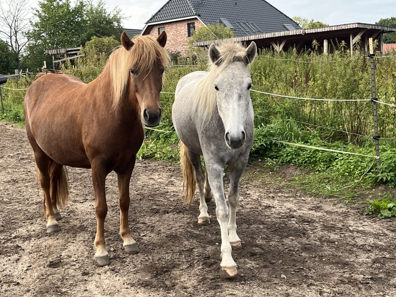 Sóley von Ást (DE2021263289) Abstammung: V: Sólnes frá Ytra-Skörðugili (8.51) M: Vina vom Derkingshof Sóley ist eine 5jährige, große, langbeinige Stute, die den Menschen sehr zugetan ist. Ihr freundlich-eifriger Charakter macht das Arbeiten mit ihr stets angenehm. Sie ist lernwillig und überzeugt durch gute Grundgangarten und viel Tölt in den Übergängen. Auch für die Zucht ist sie auf Grund ihrer Farbgenetik interessant, da sie als Braunwindfarbschecke (wie die Mama siehe Bilder) geboren ist. Sie verfügt über ein gutes Exterieur mit starken Fundament und deckt auch größere Reiter ab. Sóley wurde letztes Jahr schonend angearbeitet und ist jetzt bereit nach der Winterpause voll durchzustarten. Sie kennt Longe, Spazieren gehen, Handpferdereiten, und an der Longe den Reiter. In jeder Lage zeigt Sóley sich stets Mutig und lässt sich auch vom durchqueren eines Baches nicht aus der Ruhe bringen. Sie ist perfekt für jemanden der ein tolles Pferd zur Weiterausbildung und ein zukünftiges Spaßpferd sucht. Der Preis steigt mit weiterer Ausbildung.