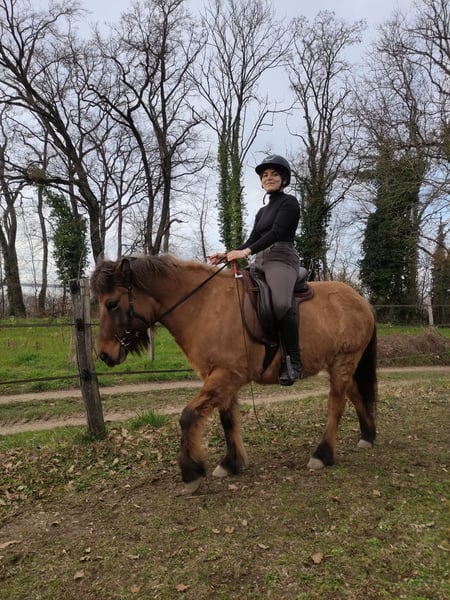 7-year-old Icelandic mare by Qkvika des Matalys out of Lysingur des Matalys. Trained, with a solid foundation in groundwork and ethology. Five gaits, shows tölt but will require further training. Well-built mare with good bone structure. Currently turned out for walks. Up to date on vaccinations, deworming, osteo, and dental care. Isey has a strong character, very curious, interested in everything. She is willing and responsive if your cues are clear. Very easy to load into a trailer. Can be led on a longe line. Raised in a herd and on mountain pasture during summer for proper development and balance. Has foaled without any issues. Currently available in Haute-Savoie, near Sciez, 74140 France, 20 km from the Swiss border. More information via private message.
