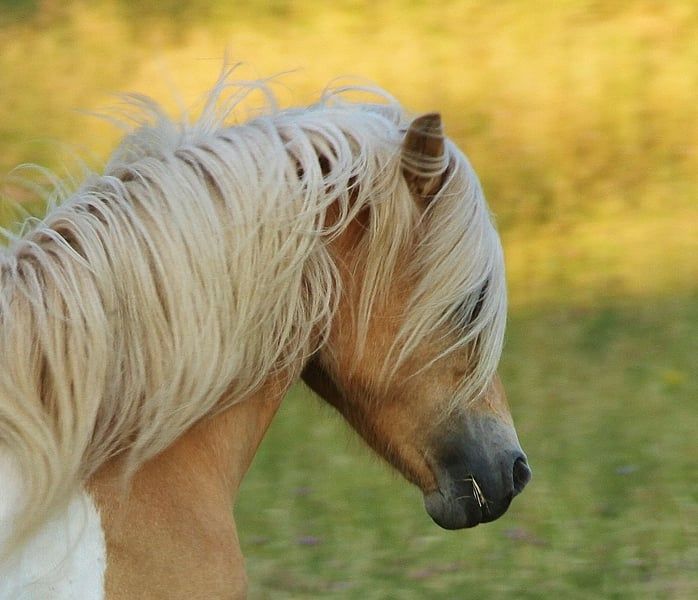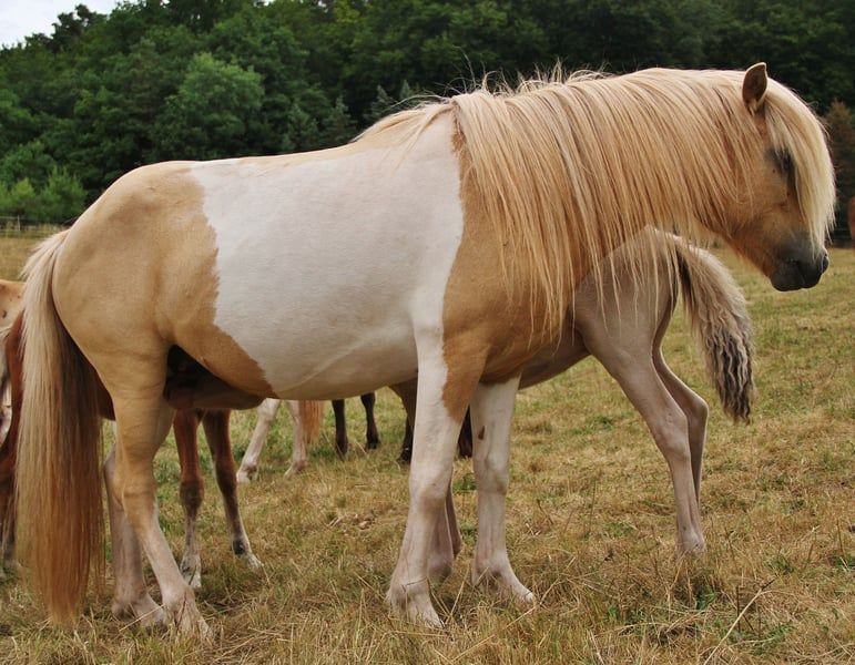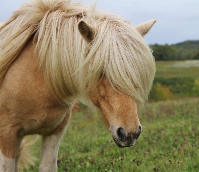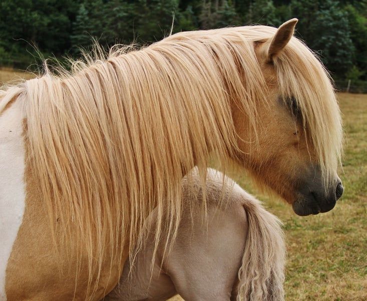 Yegua de Islandia con carácter, con una melena espectacular, de color isabellado con manchas, de crí