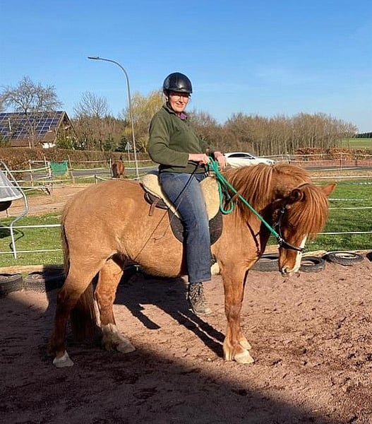 La nostra cara Fenja cerca urgentemente una nuova casa a cinque stelle in Germania. Purtroppo, ci siamo sottovalutati con il nostro trasferimento in Spagna e, dopo tre anni fantastici, siamo ora costretti a vendere tutto. Anche la nostra finca, un sogno per ogni cavallo, è in vendita. Fenja l'ho presa quando aveva 2 anni, mentre ancora vivevamo in Germania. L'ho abituata presto a tutto, ma ho iniziato a montarla solo a 4 anni, sempre in modo sporadico. Qui in Spagna, però, non avevo più il tempo. Poiché Fenja è un pony molto tranquillo, non è mai stato un problema montarla di tanto in tanto. Dal carattere, non è un Icelandic nervoso. Sua madre ha sangue Quarter. Per questo, Fenja è piuttosto robusta e sostiene bene anche me, da adulta, con circa 75 kg. Grazie alla sua schiena larga, è molto comoda, e cavalcarla senza sella è un vero sogno. Vorrei cederla con un sella in pelle Deuber adatta e altri accessori. Probabilmente è una trottatrice di quattro andature. Una prova può essere fatta presso Christiane Engels a Oberzissen. Lì dovrebbe arrivare anche con il trasporto dalla Spagna. Stiamo ancora definendo i dettagli.