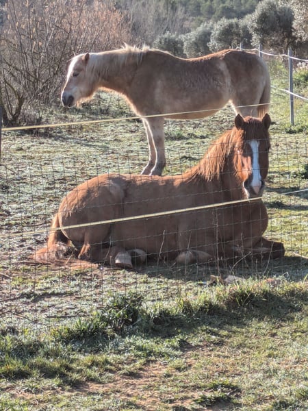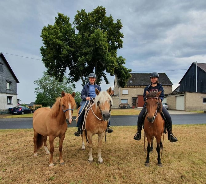 Our beloved Fenja is urgently seeking a new five-star home in Germany. Unfortunately, we overestimated our move to Spain and, after three wonderful years, are now forced to sell everything. Our finca, which is a dream for every horse, is also for sale. I acquired Fenja as a two-year-old when we still lived in Germany. I introduced her to various experiences early on, but I only started riding her at the age of four, and only sporadically. Here in Spain, I simply lacked the time. Since Fenja is a very laid-back pony, it was never an issue to ride her occasionally. She is not a hot-tempered Icelandic horse by nature. Her mother has Quarter Horse lineage, and her father is a licensed Icelandic stallion, visible in the last photo. That’s why Fenja is quite stocky and comfortably carries me as an adult weighing around 75 kg. Thanks to her broad back, she is very comfortable to ride, and riding without a saddle is a dream. I would be happy to sell her with a suitable Deuber leather tree saddle and additional equipment. She is probably a four-gaited horse; a lunging session can be arranged with Christiane Engels in Oberzissen. She will likely be transported from Spain to there as well. Transport costs are approximately €1,500. I have already factored this into the price. If Fenja comes to Oberzissen for training, the price will increase accordingly.