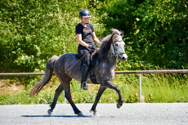 Hnokkadis frá Hofsósi 2018 Stkm 1,40 Stelpa frá Haukagili Hnokki frá þúfum Unkomplizierte 7 jährige Fünfgangstute Du möchtest - Turniere reiten - auf Kurse fahren - Wanderitte mitmachen - auf Reiterrallye gehen Dann habe ich das passende Pferd für Dich Hnokkadís bringt eigentlich alles mit was man so braucht. Unkomplizierter Charakter, einfach im Umgang, klar getrennte gleichmäßige 5 Gangschaltung. Bisher wurde sie 4 gängig trainiert, erste Trainingsheiten im Pass fangen grade an. 5 jährig ist sie schon 1-2 kleine Turniere gelaufen ( mit mäßigem Erfolg in den Noten dabei aber immer super brav und sehr unkompliziert auch im Umgang in fremder Umgebung) mittlerweile sind die ersten 5,5-6 Einzelnoten dabei, im stabilen 6er Bereich sehe ich sie auch bei weiterem Training. Ob Freispringen, Bodenarbeit, Handpferd mitnehmen, Hnokkadís ist für alles zu haben, neugierig und offen allem Neuen gegenüber. Hnokkadís ist seit über 5 Jahren in Deutschland und komplett ohne Anzeichen von Ekzem. Auch ansonsten ist sie gesund, regelmäßig geimpft, entwurmt und bekommt die Zähne gemacht. Aufgrund ihres Schwungs in den Gängen sehe ich sie nicht als reines Anfänger oder Kinderpferd, man kann aber ohne Probleme Kinder auf ihr führen. Insgesamt ist sie sehr gelassen und unerschrocken und lässt sich nur selten aus der Ruhe bringt, dabei ist sie aber trotzdem keine Schlaftablette .Gut vorstellen kann ich sie mir als Luxusfreizeitpferd, gut geeignet für Kurse, Abzeichen oder auch einfach nur um entspannt alleine oder in der Gruppe ins Gelände zugehen, dort ist sie an jeder Position ohne Probleme zu reiten. Aber auch im Sportbereich ( grade in den leichteren Prüfungen) wird sie eine gute Figur mit Jugendlichen oder Erwachsenen machen. Sie wurde von mir ( Trainer C ) selbst gezüchtet und ausgebildet. Sie kennt auch Hunde, Traktoren, den Straßenverkehr und ist Schmiede und Verladefromm. Für mehr Infos oder weitere Videos gerne PN.