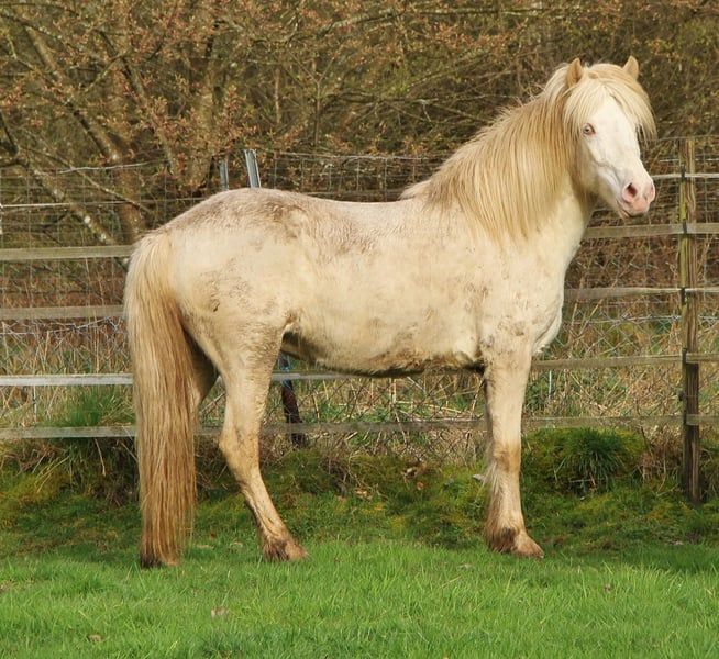 Mijn mooie Titania zoekt haar forever home. Ze is bij mij geboren in 2016 en was tot nu toe uitsluitend een fokmerrie. Vanwege een geboorteprobleem dit jaar mag ze niet meer ingezet worden voor de fokkerij. Tot begin 2026 heeft ze nog haar laatste veulen onder haar hoede en kan pas na het spenen naar een nieuw huis verhuizen. Titania is vrij van eczeem en blessures. Helaas heeft ze een langzaam progressieve ziekte die haar tot nu toe niet beperkt, en die momenteel alleen in de zomer zichtbaar is als een visueel esthetisch bezwaar. Daarom wordt ze zeer voordelig afgestaan aan een goede eigenaar die de tijd heeft om met haar te werken. Helaas heb ik zelf absoluut geen tijd, dus ik reduceer en vind het zonde dat ze vanaf volgend jaar alleen nog maar op de wei staat zonder beweging. Na het spenen van haar veulen zou ze haar opleiding tot rijpony kunnen starten. Qua karakter is ze een schat die alles braaf meemaakt en ook in de kudde goed gesocialiseerd en gedragstechnisch onopvallend is. Haar temperament is overwegend evenwichtig, met een heldere geest gecombineerd met werklust en rijplezier. Bij haar keuring voor het stamboek viel ze op door veel tempo in de basisgangen, waarbij ze vaak speels snel van draf naar een snelle tölt wisselde, waardoor je zeker kunt zijn van haar goede tölt aanleg. Ik verwacht dat ze, net als haar moeder, bij bereden werk, vooral op bergafwaarts terrein, vanzelf de tölt zal ontwikkelen. Ook al heeft ze tot nu toe geen pass laten zien in vrijlopen, ik ga ervan uit dat deze ergens in haar schuilt. Hierdoor heeft men ook de mogelijkheid haar eenvoudig viergangen te trainen. Door haar huidige houding is ze aan veel gewend, waardoor ze de meeste dingen relatief angst- en schrikvrij benadert. Door haar eerdere omgang is ze braaf met halsters, aanlijnen, poetsen, leiden, en is ze ook hufverzorging en laden gewoont. Ze is ook regelmatig gevaccineerd tegen tetanus en influenza, en ontwormd. Met haar prachtige perlino-lichtschimmel kleur, blauwe ogen en mooie manen is ze als een eenhoorn of prinsessenpaard. Vanwege haar karakter en aard is ze, met de juiste opleiding, zowel geschikt voor kinderen als volwassenen. Door haar goede fundament en haar gemeten stokmaat van 137 cm kan ze ook gemakkelijk een volwassene ruiter tot maximaal 70-75 kg dragen. Graag kan ze persoonlijk worden leren kennen. Gelieve alleen te reageren als er echt serieus interesse is en u de tekst hebt gelezen.