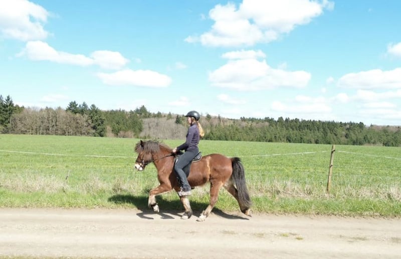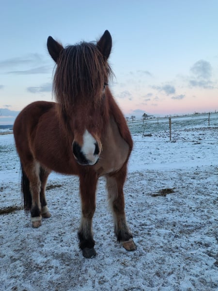 Skráning ist eine sehr hübsche 9-jährige Fünfgangstute mit Stern und Schnippe, die sehr viel Spaß beim Reiten macht. Ihre Lieblingsgangart ist der Tölt mit ansprechenden Bewegungen, der sowohl im langsamen Tempo als auch im starken Tempo immer taktklar abrufbar ist. Sie hat letztes Jahr ihre ersten Turniererfahrungen gesammelt, wo sie Potential in Töltprüfungen als auch Passprüfungen zeigt. Ihr Rennpass wird momentan weiter trainiert, wobei sie erfolgreich beim IPZV-RA 3 als Passpferd eingesetzt wurde. Ihr Charakter ist sehr liebenswert mit toller Ausstrahlung. Skráning kennt große Maschinen, Fahrradfahrer etc und hat zudem auch schon ein paar Wanderritte mitgemacht, wo sie sich als sicheres und mutiges Reitpferd gezeigt hat. 2023 hat Skráning ein Fohlen bekommen, das sich sehr gut entwickelt und auch am Hof steht. Skráning wird regelmäßig entwurmt, geimpft und ist seit ihrem Import 2021 ekzemfrei.