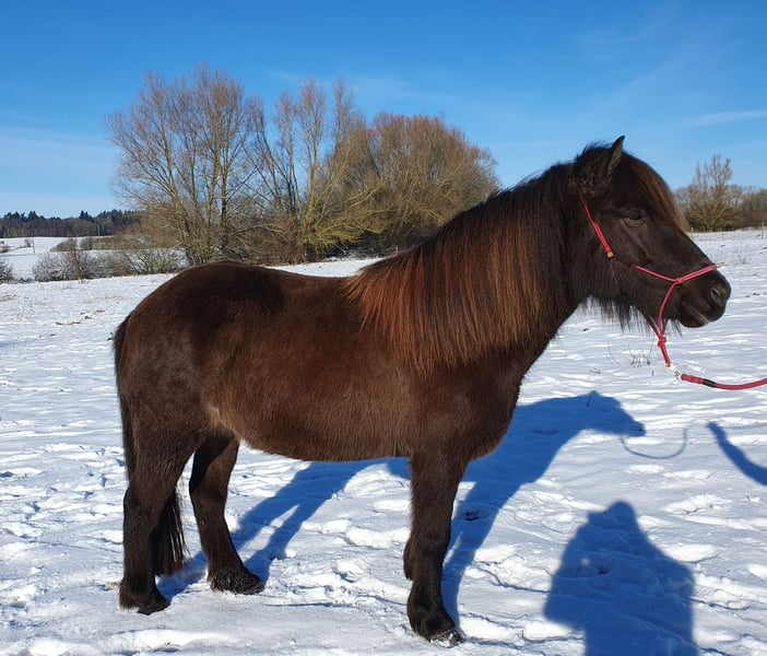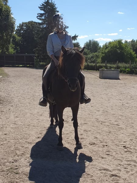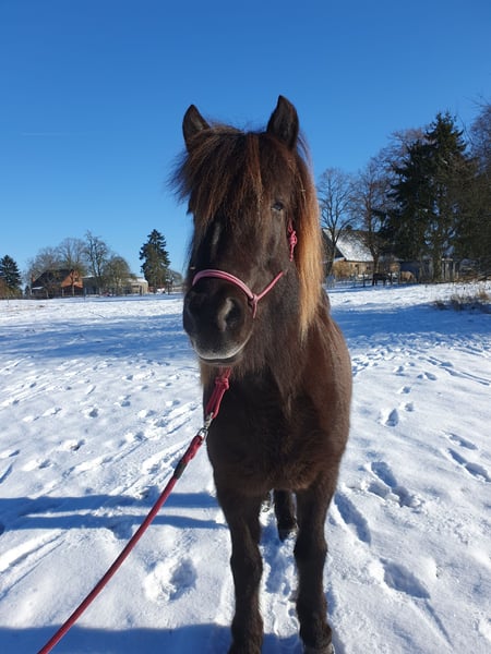 I would like to sell my Flanka — a striking roan with an eel stripe — to someone who enjoys long rides with an interested and lively horse, as she clearly has fun doing so. She behaves well in the arena; I have used her as a coaching horse, and thanks to her pedigree, she is also suitable for breeding. With further training, she might even be capable of competing in certain disciplines. She was initially trained by a horsemanship instructor who worked with her in the arena and on trails, riding her in all three basic gaits. She also has a lot of tölt, which still needs to be developed further, as she hasn't been ridden much lately — mainly because she can be quite curious and eager to move forward. This has led to her becoming somewhat bored here. I am only offering her to someone who has enough time for her, is an experienced rider, and wants to go on trail rides with her. She is not suitable for beginners or riders who tend to hold back out of fear. If there is genuine interest and a good fit, Flanka can be introduced to her new owner over several days with test rides.