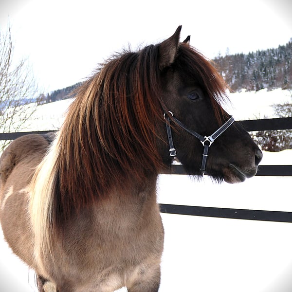 Hnísa is a large, beautiful mouse-colored pinto mare with a great character and good gaits, always friendly towards people. We liked Hnísa from the very beginning, which is why we have bred two foals with her, both of which turned out wonderfully. After weaning the last foal, we started her training in spring '24. Hnísa is familiar with groundwork, lunging, and double lunging; she is always eager and very well-behaved when out in the field. In the riding arena, she is uncomplicated and always strives to please the rider. All in all, she is a real fun horse, which we currently see in the advanced leisure riding sector. With further training, she will also make a good impression in sports. Further information and many pictures from her first day of life can be found on our homepage at www.islandpferdehof-obersolbach.de/fotogalerie/hnísa. If you are interested, we look forward to your call.